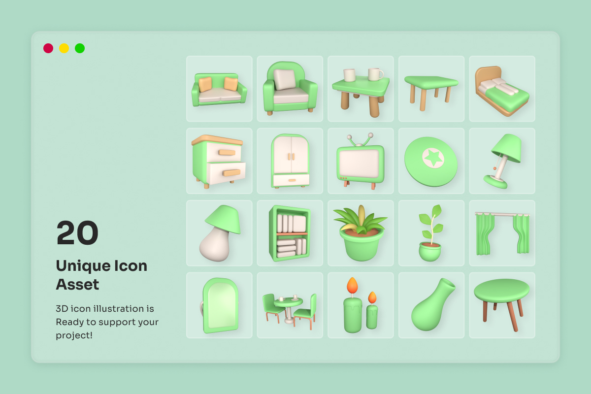 Interior Decor 3D Icon Collection Model