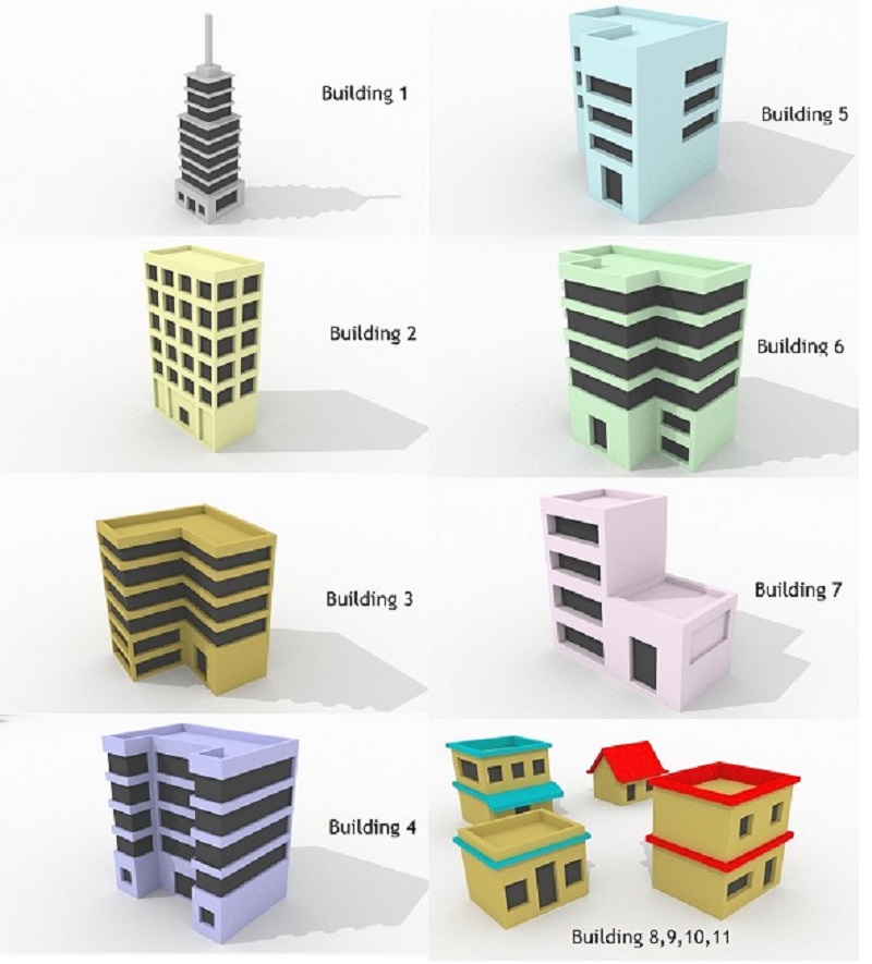 Low Poly 3d City Building Pack of 11 buildings Model