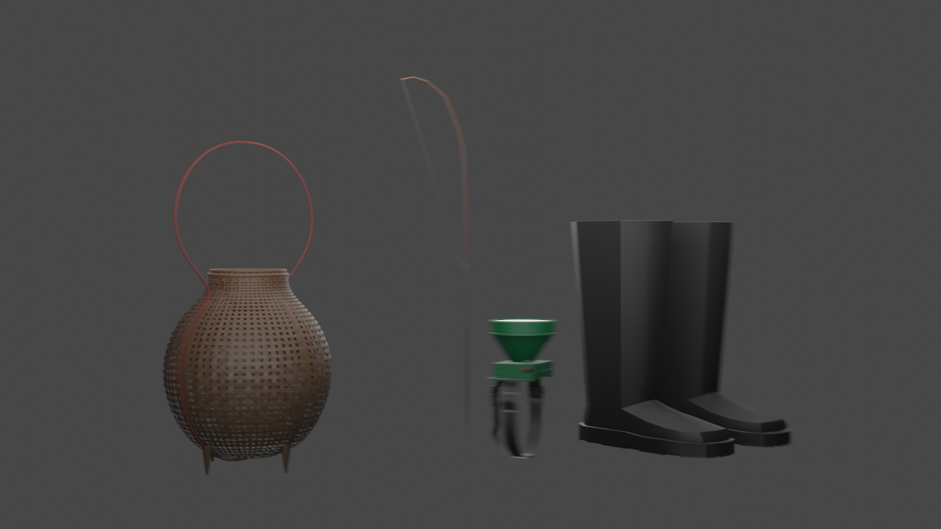 Low-poly Local Thailand Farmer Fishing Equipment Model
