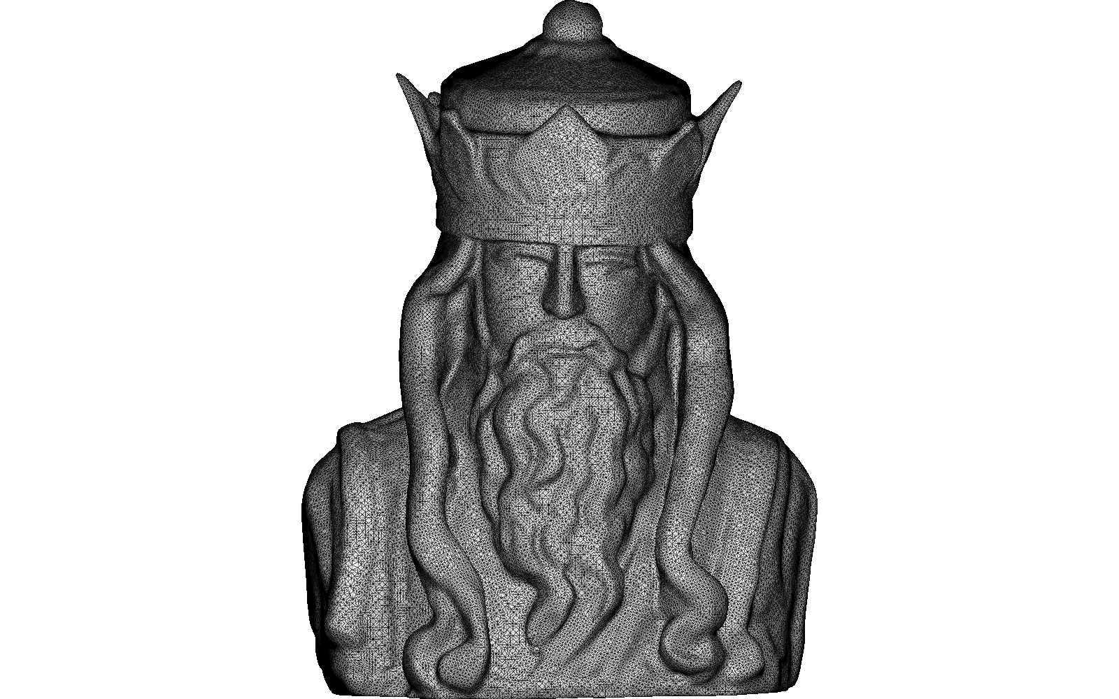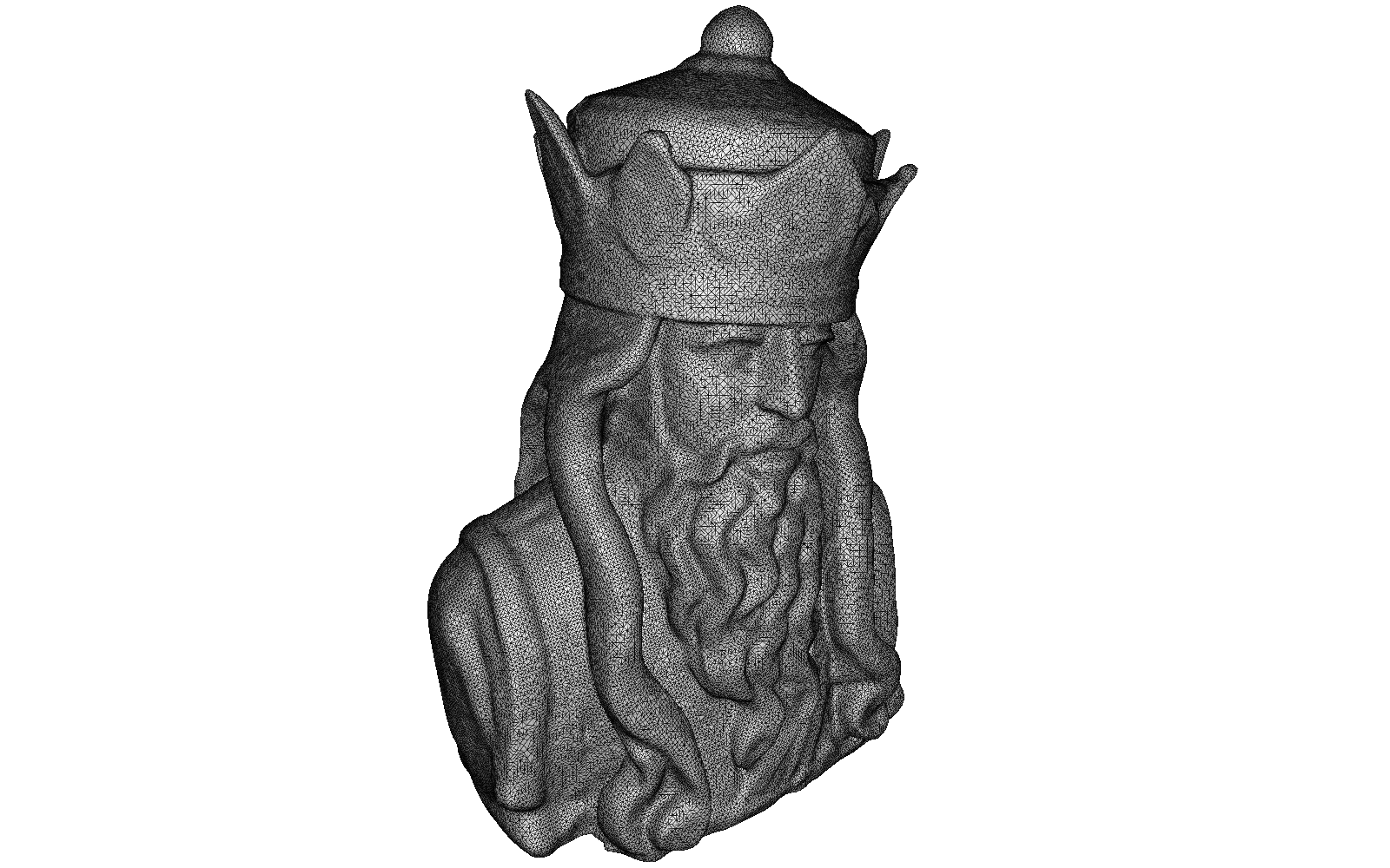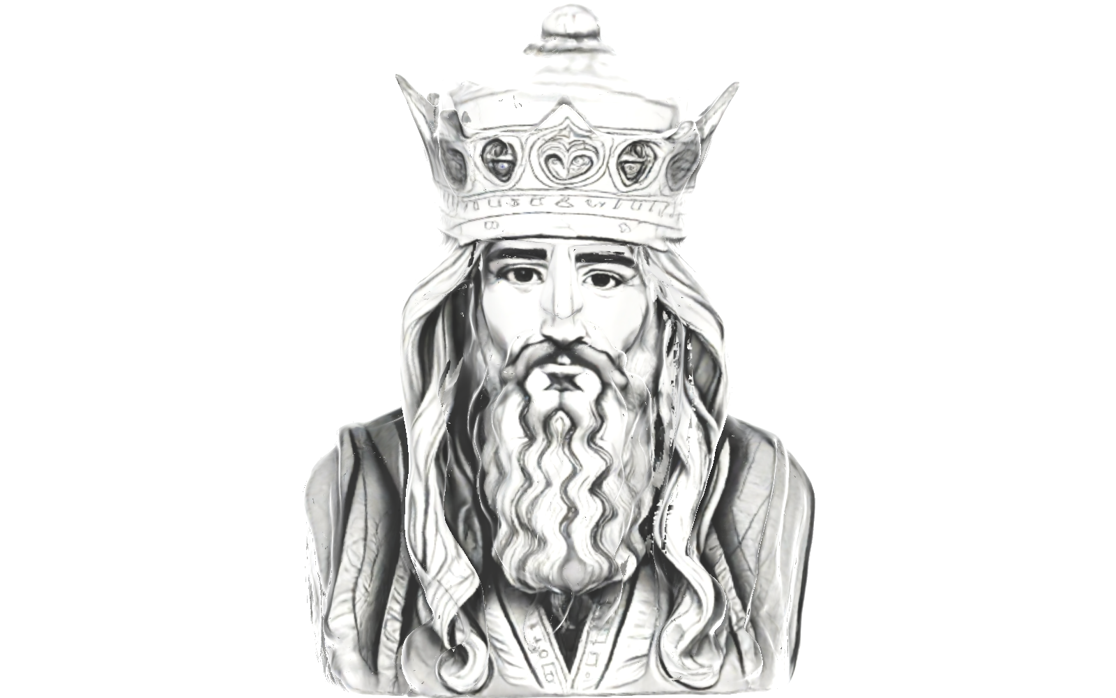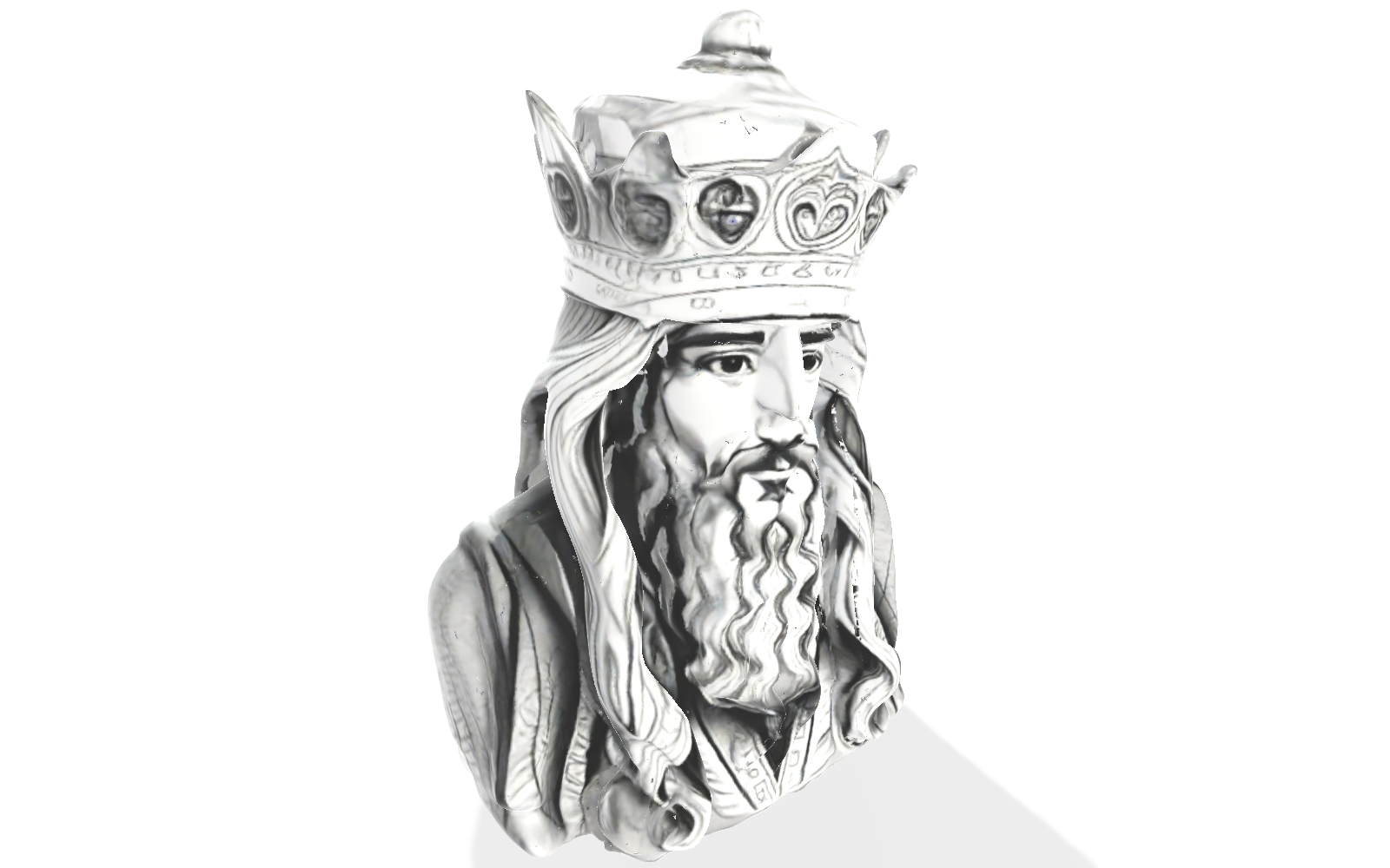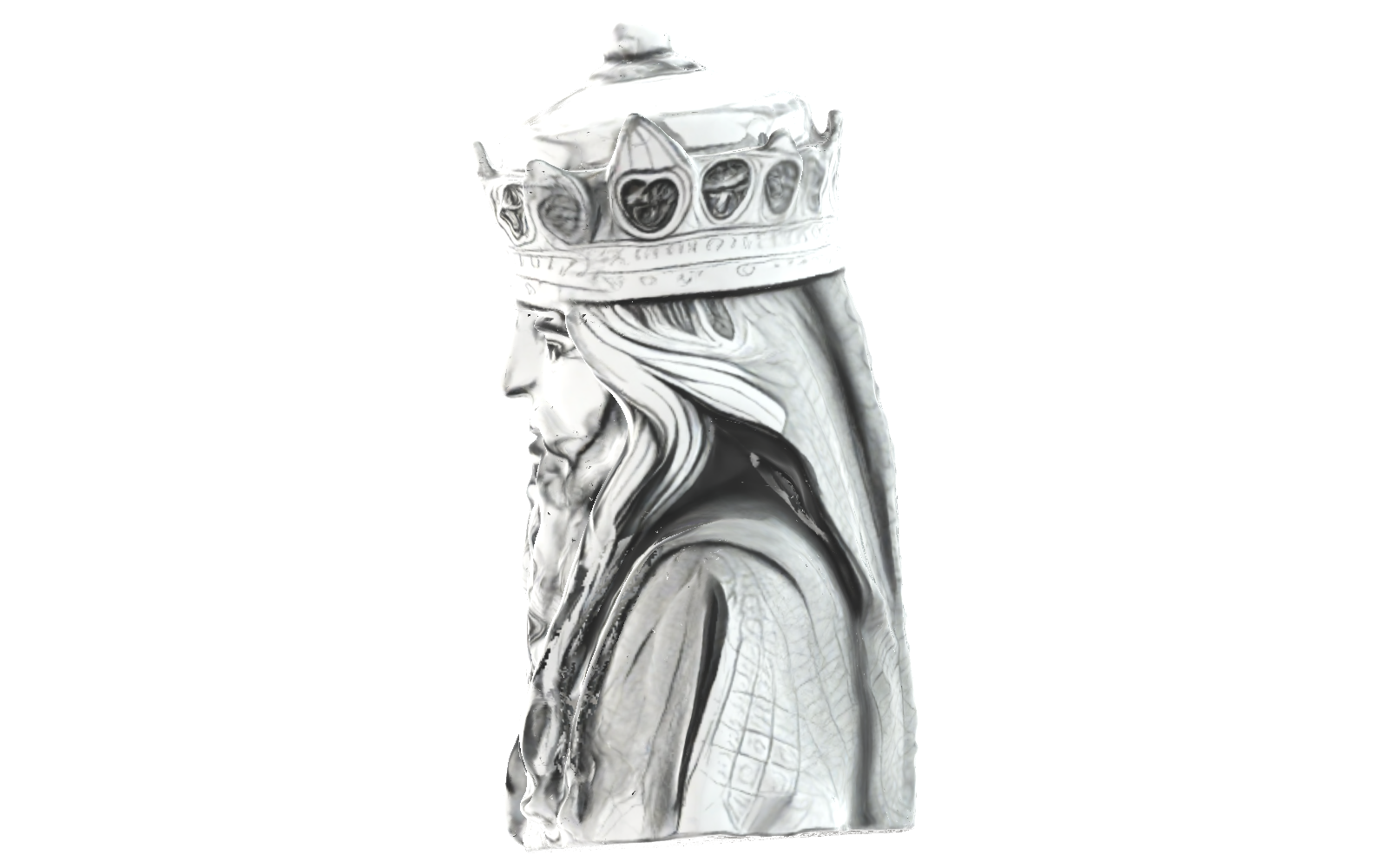 This 3D printable model features a detailed bust of a medieval king or royal figure with an ornate crown and flowing beard. The sculpture captures the regal essence of historical monarchy with intricate details in the crown's jewels and engravings. The design includes the king's distinguished facial features, wavy beard, and draped royal garments that add to the majestic appearance.