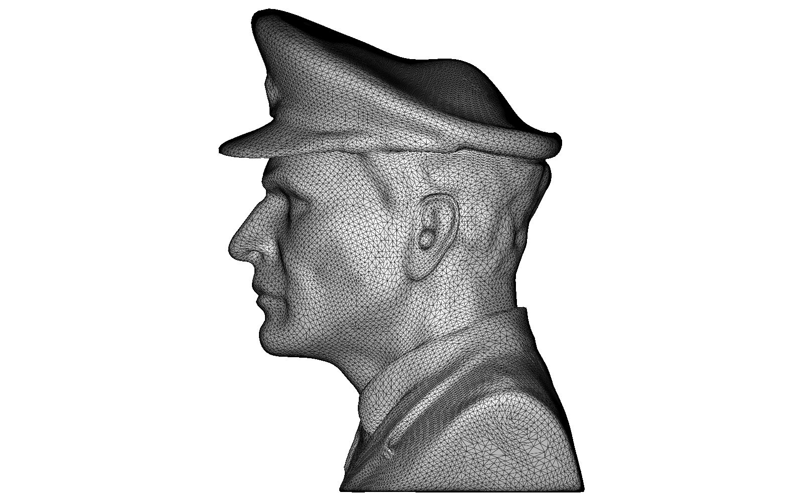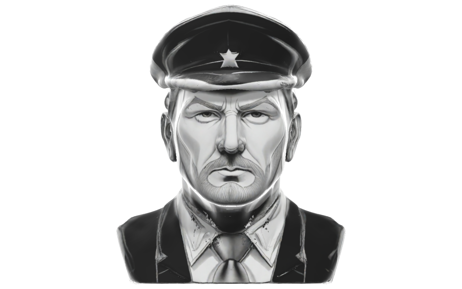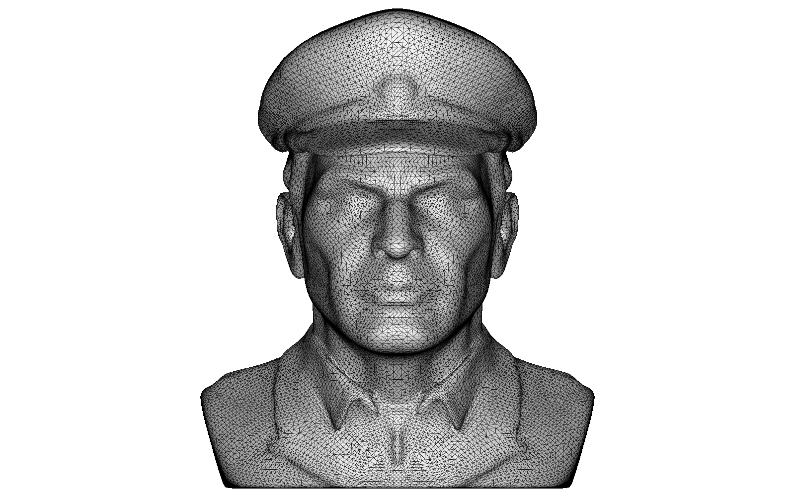 This detailed 3D printable bust features a stern military commander character with distinctive facial features and a military cap adorned with a star emblem. The design captures a serious, authoritative expression with furrowed brows and a strong jawline. Perfect for collectors, tabletop gaming enthusiasts, or as a striking decorative piece.