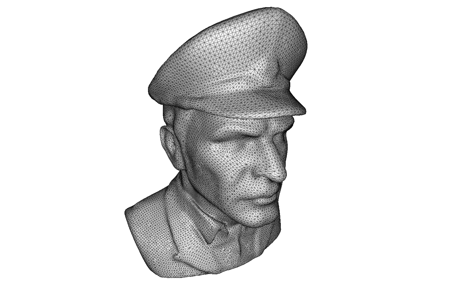 This detailed 3D printable bust features a stern military commander character with distinctive facial features and a military cap adorned with a star emblem. The design captures a serious, authoritative expression with furrowed brows and a strong jawline. Perfect for collectors, tabletop gaming enthusiasts, or as a striking decorative piece.