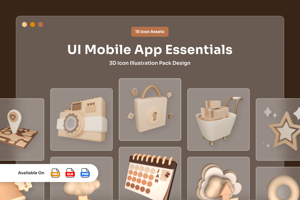 Mobile UI Essentials Soft 3D Icon Pack Model