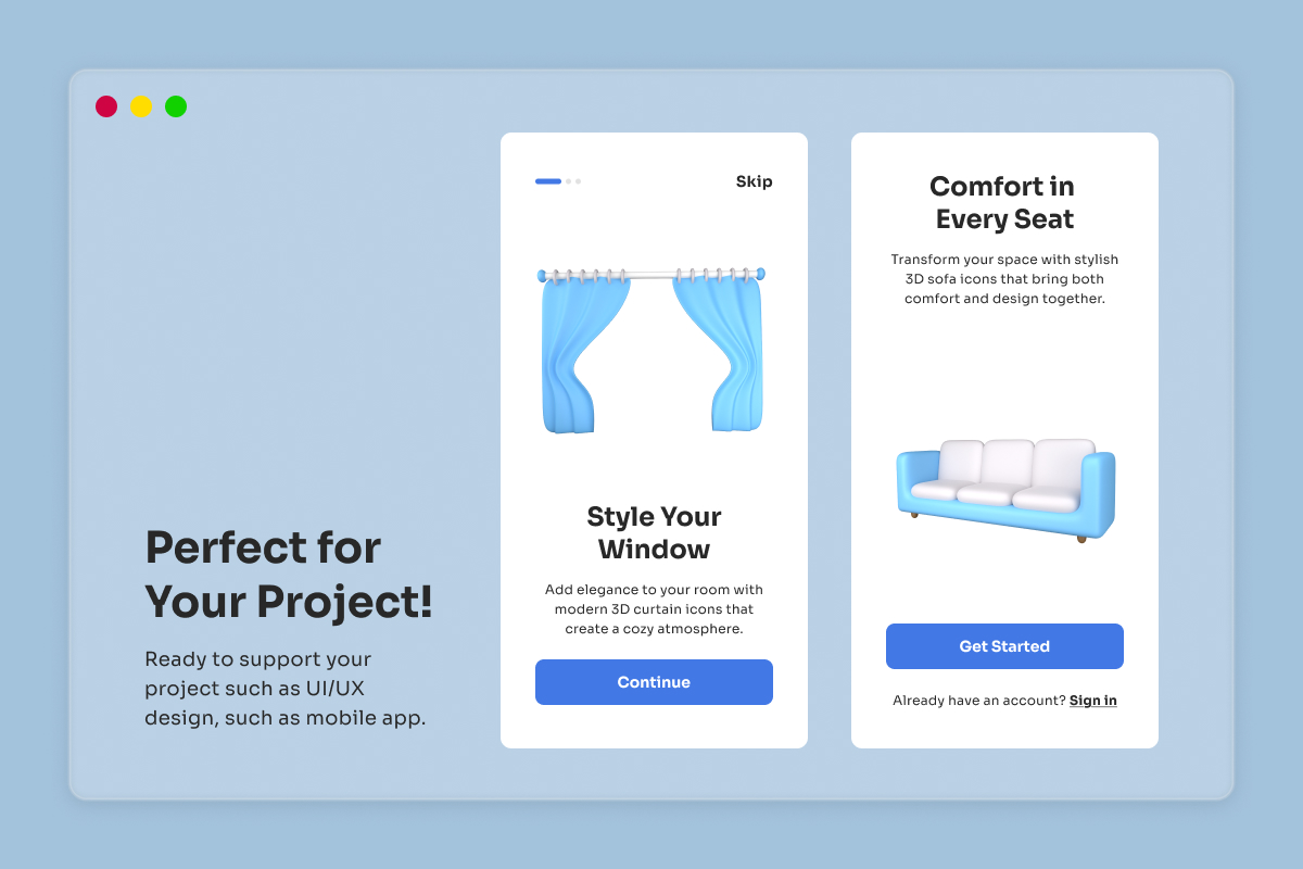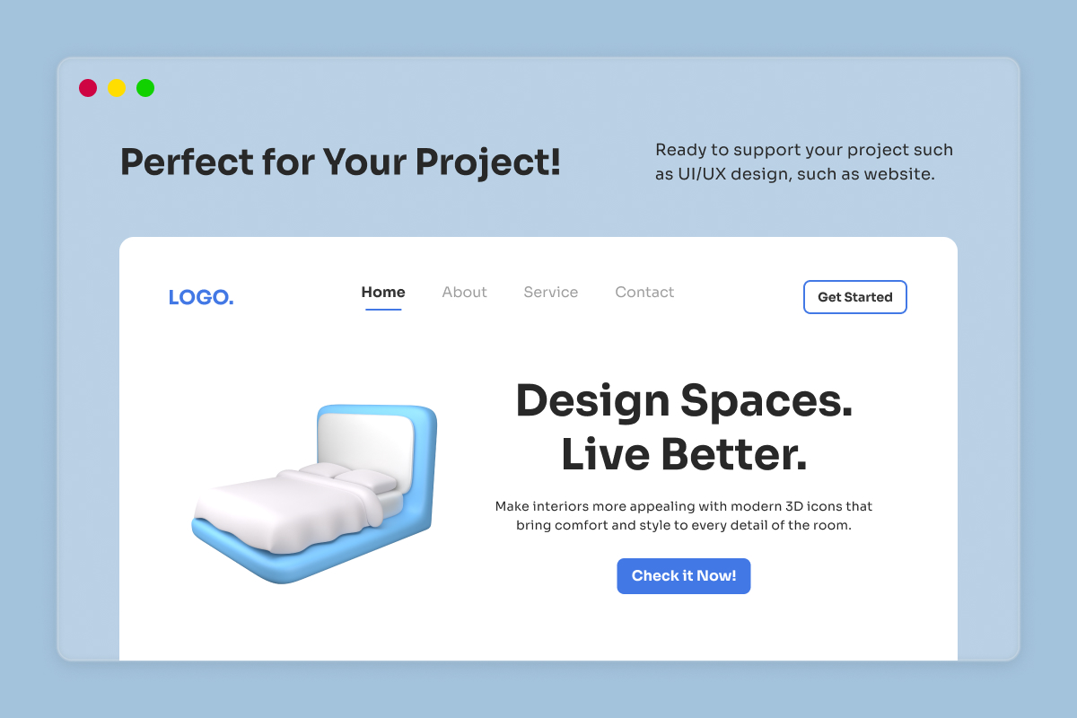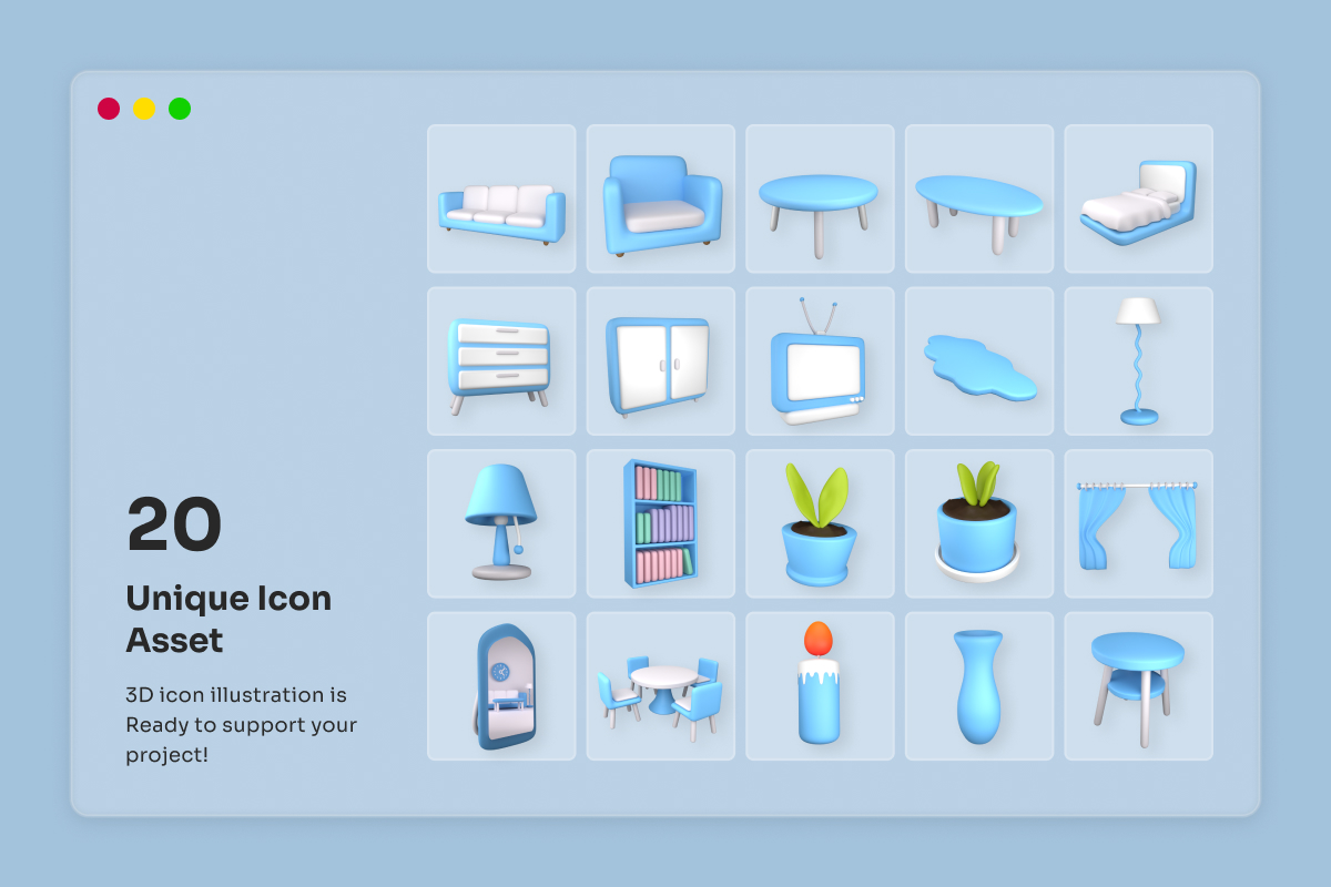 Create stunning visual presentations with this premium 3D icon set, featuring furniture and decor props in clean-modern style. Perfectly balanced between realism and minimalism, making it ideal for UI design, catalog mockups, and marketing materials.