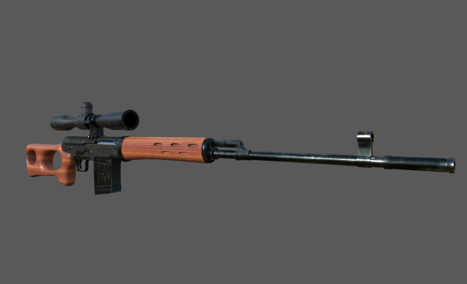 - Description: Designed for long-range combat, this sniper rifle model showcases intricate detailing, especially around the scope and barrel.