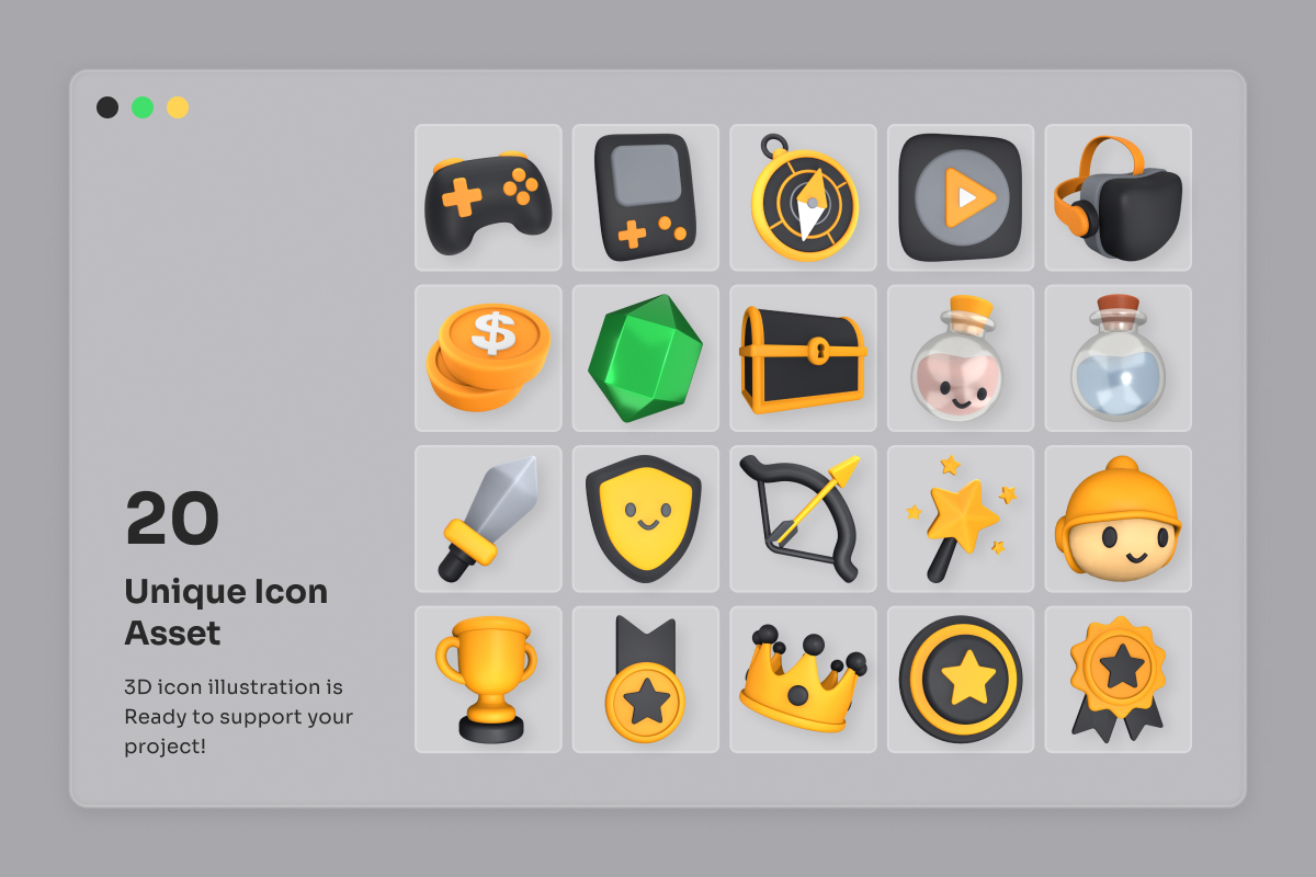 Perfect for designers, developers, and streamers looking for a polished, professional, and ready-to-use 3D asset collection for gaming dashboards, mobile apps, or esports branding.