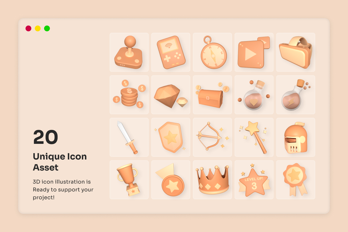 Upgrade your visual assets with this premium 3D gaming icon pack. Designed with cinematic lighting and smooth geometry, it delivers a polished and futuristic look for any project.