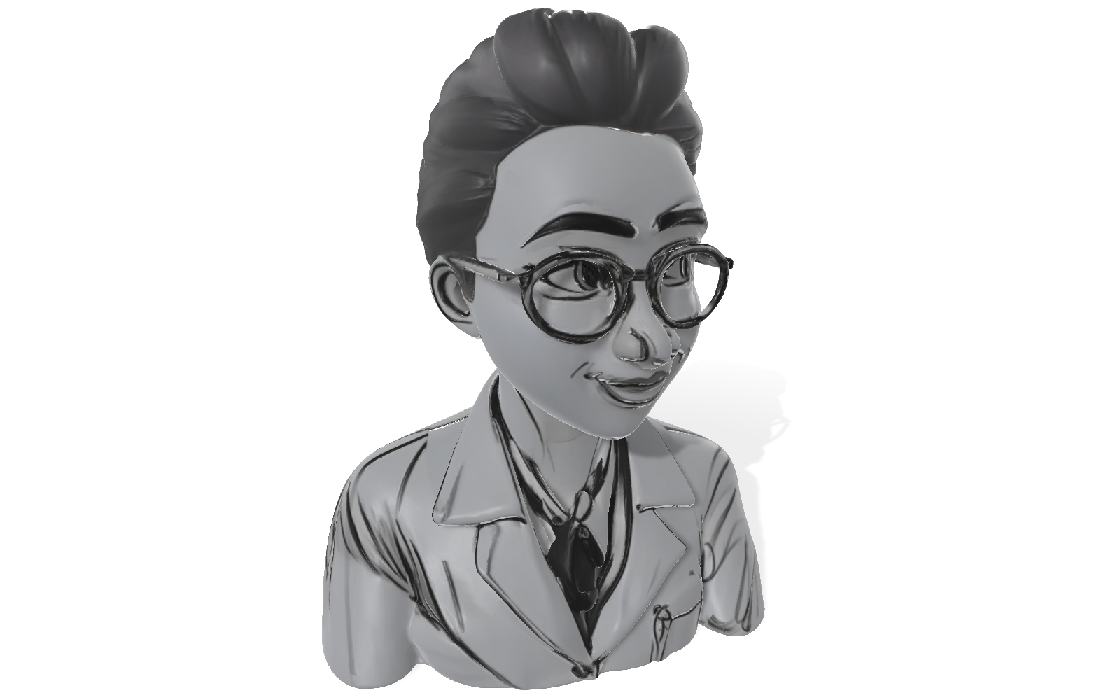 The sculpture is rendered with a sleek, glossy finish that highlights its contemporary design. Perfect for office spaces, home studies, or as a unique gift for professionals and academics. The minimalist yet expressive facial features convey confidence and approachability.