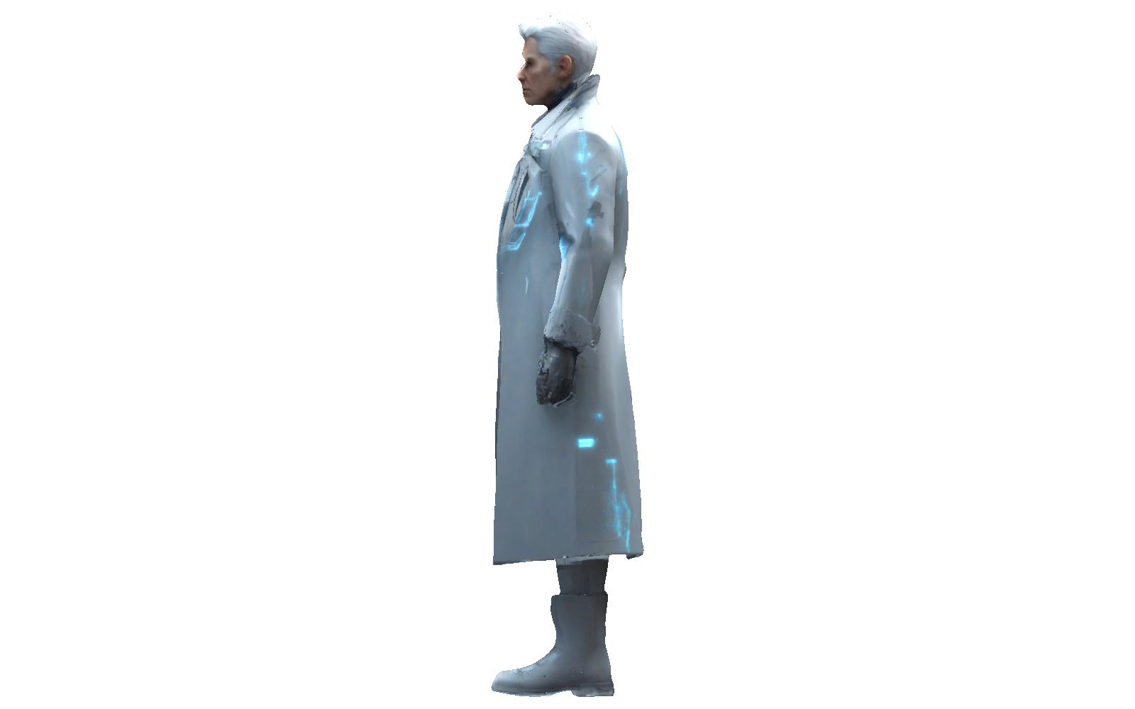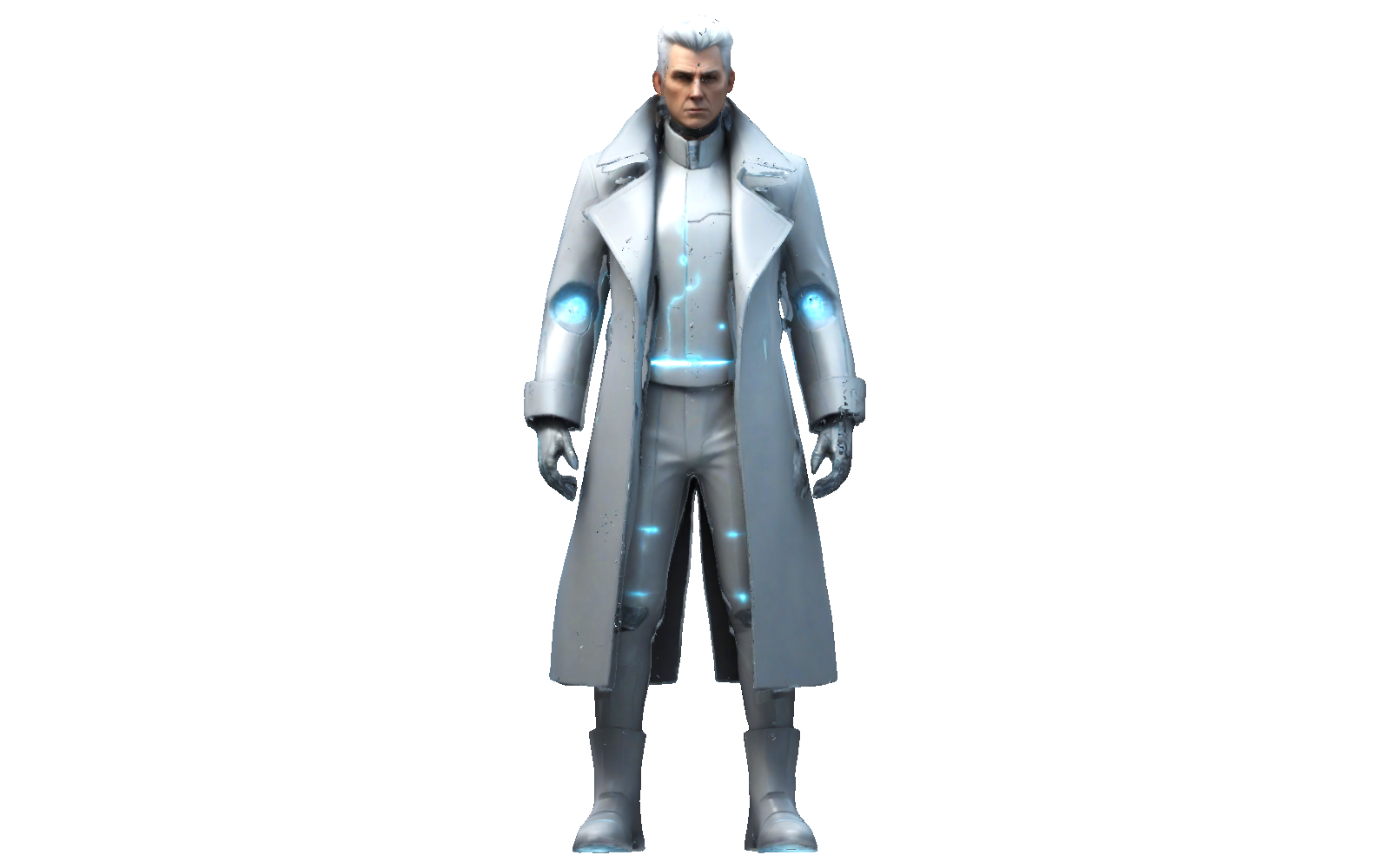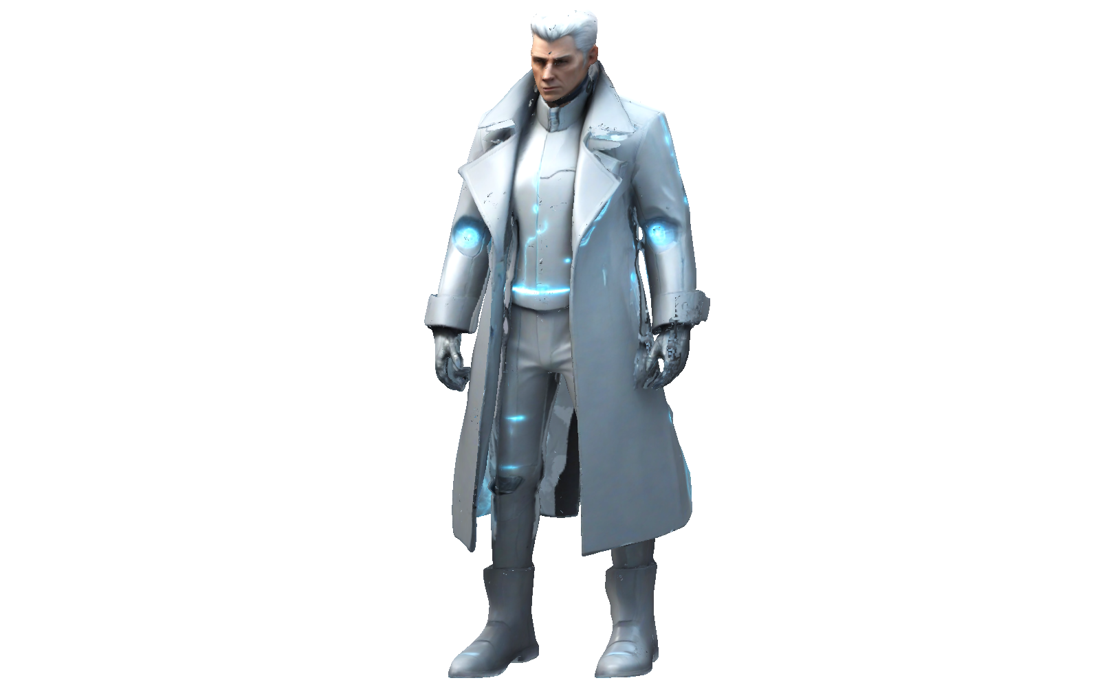 Imagine a sleek, futuristic figure wrapped in a long, stylish coat with glowing accents and a confident stance. This design blends sharp, modern lines with a touch of sci-fi flair. The coat’s panels and high-tech details give it a sophisticated look, making it an eye-catching collectible or display piece.