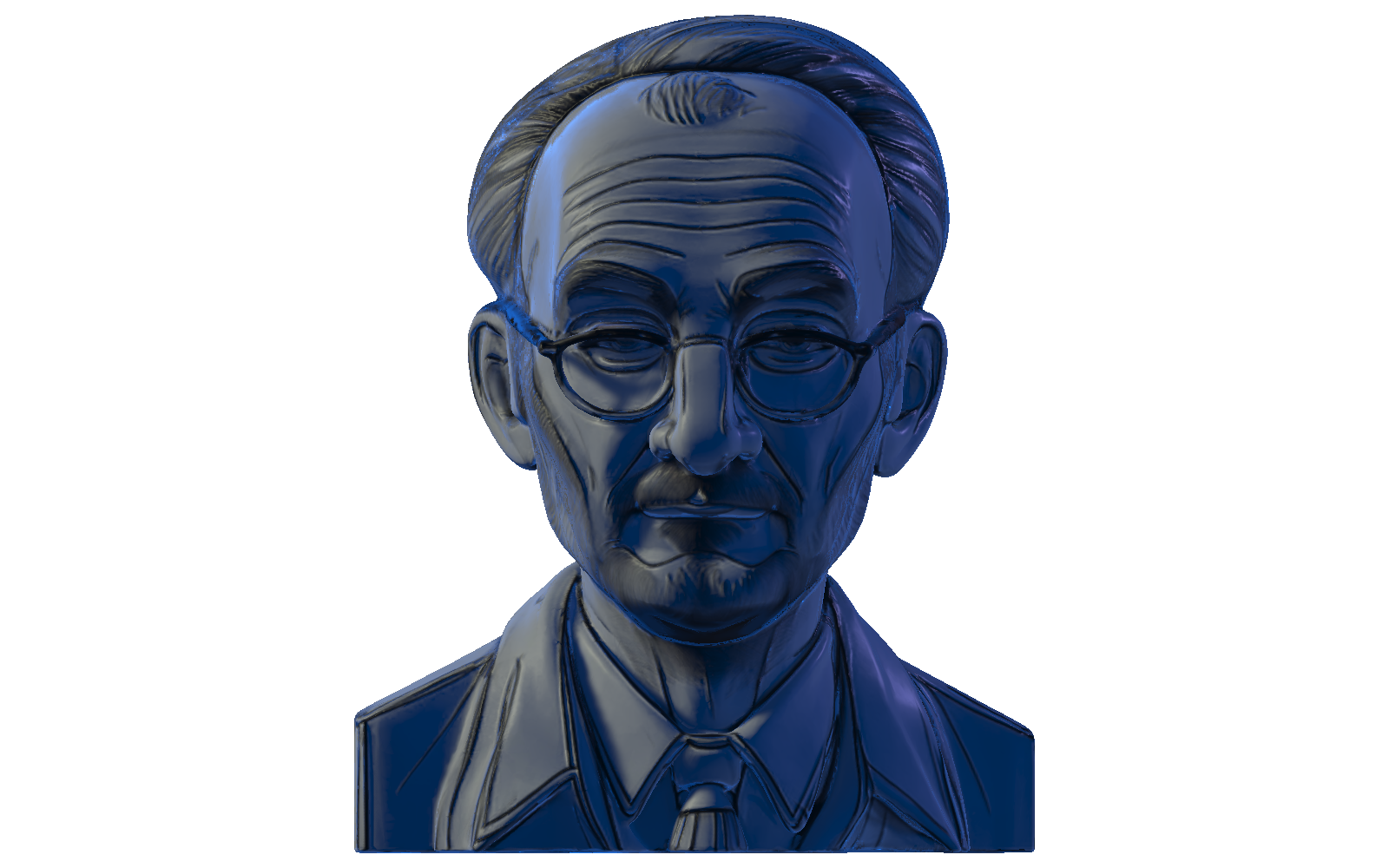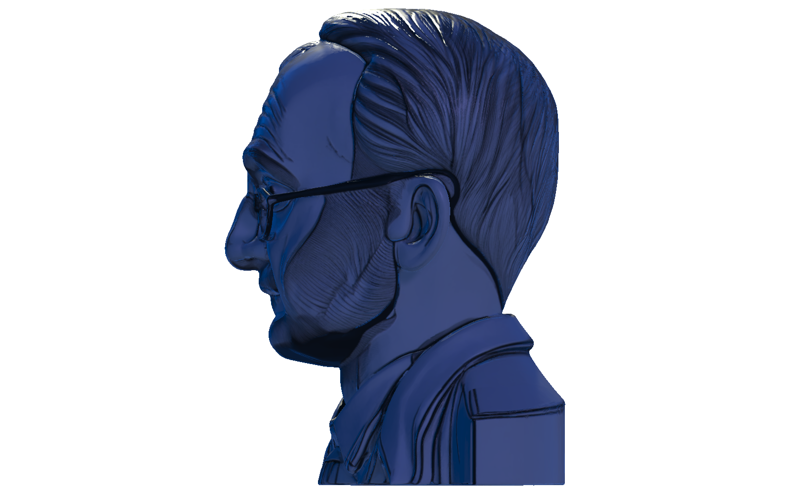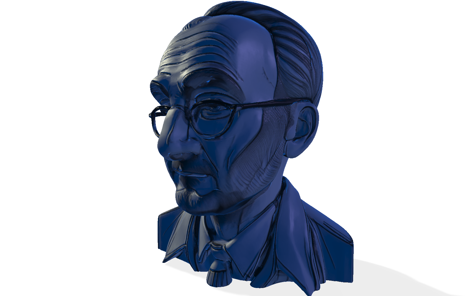 This stylized bust depicts a thoughtful figure with glasses and a slightly furrowed brow, capturing a gentle and reflective mood. It’s designed to showcase expressive facial details, from the subtle wrinkles around the eyes to the neatly tied necktie. The model can serve as a charming decorative piece on a desk, shelf, or as a unique gift.