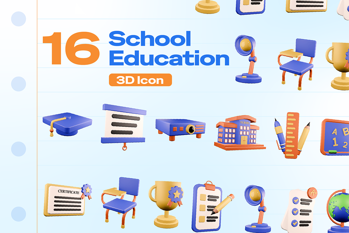 This set comes with 16 playful and modern 3D icons that perfectly capture the world of education, from school buildings, books, and trophies to globes, graduation caps, and more. Whether you’re working on a website, app, presentation, or social media design, these icons add a fun and professional touch that makes your project stand out.