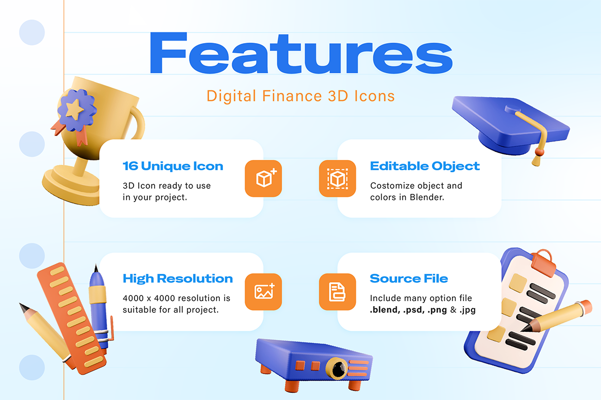 Learning doesn’t have to look boring, let your design speak knowledge with these colorful 3D icons!