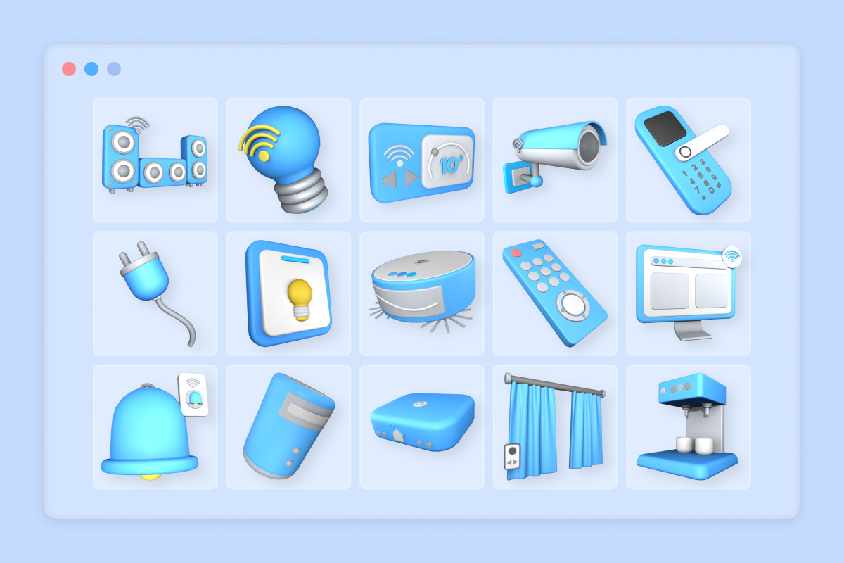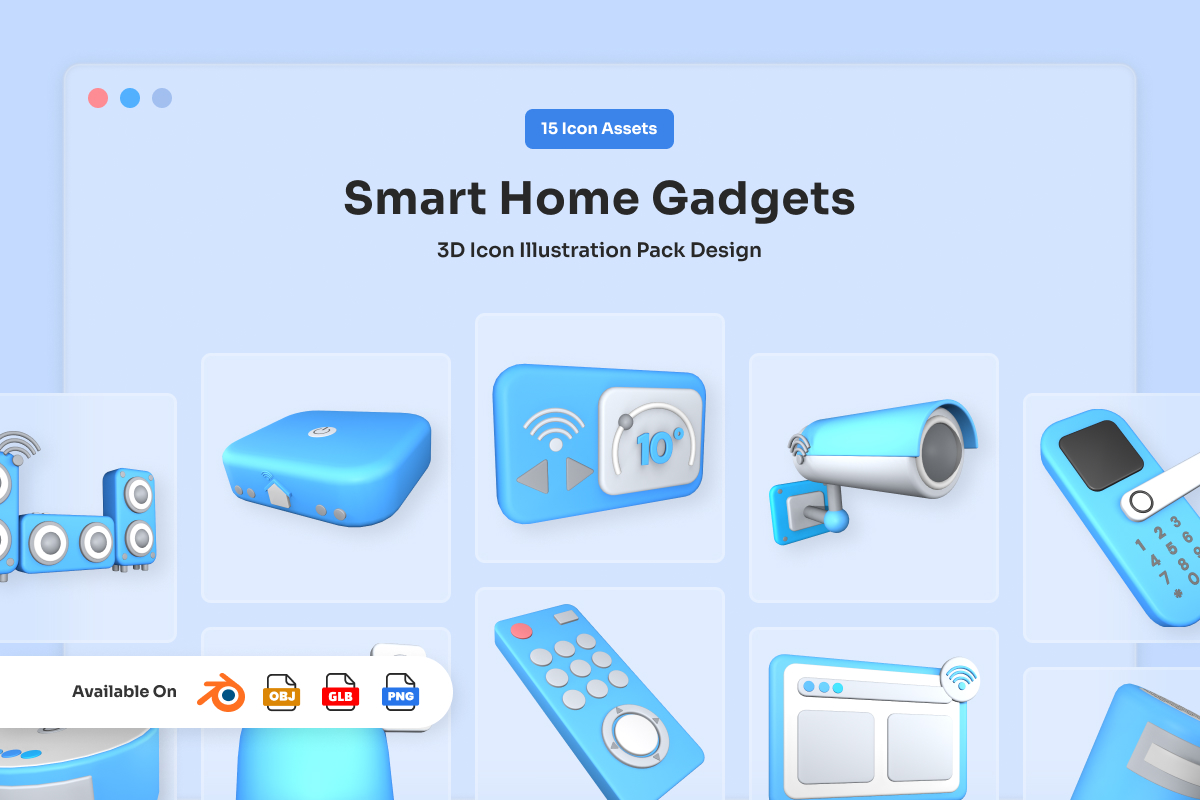 Premium 3D icon set featuring smart home gadgets with modern minimal style and realistic details. Perfect for UI/UX, apps, presentations, and creative projects needing a sleek tech aesthetic.