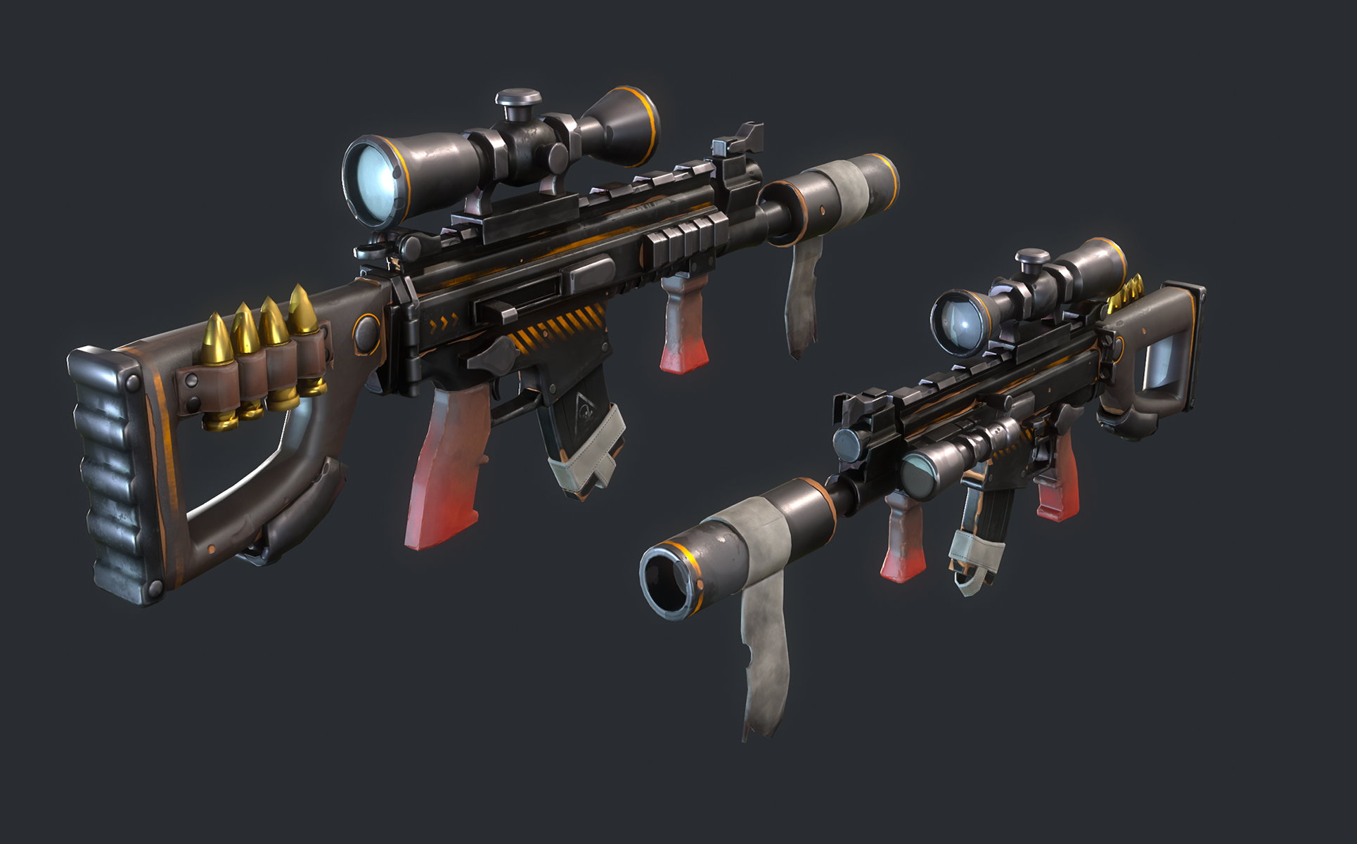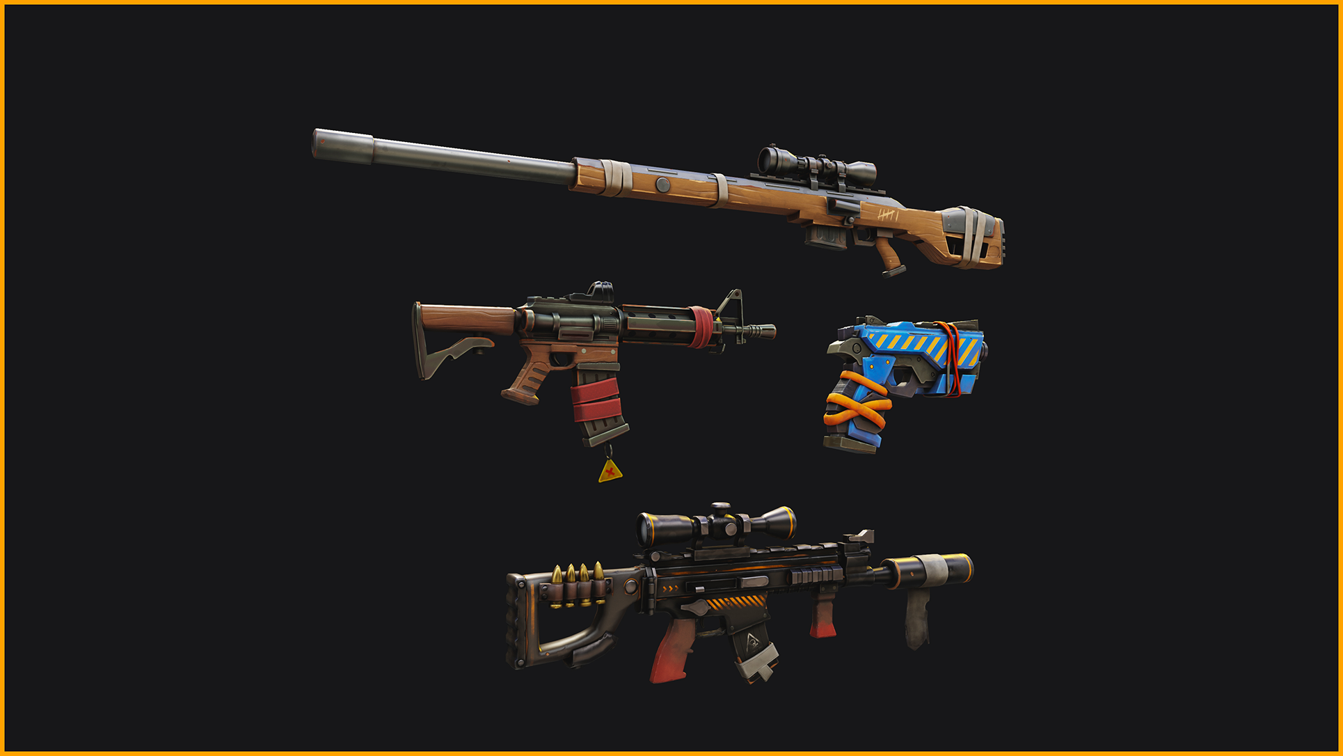 The pack of gun is Great for game genre like MMORPG, strategy, third person, topdown etc and looks great in cartoon style.