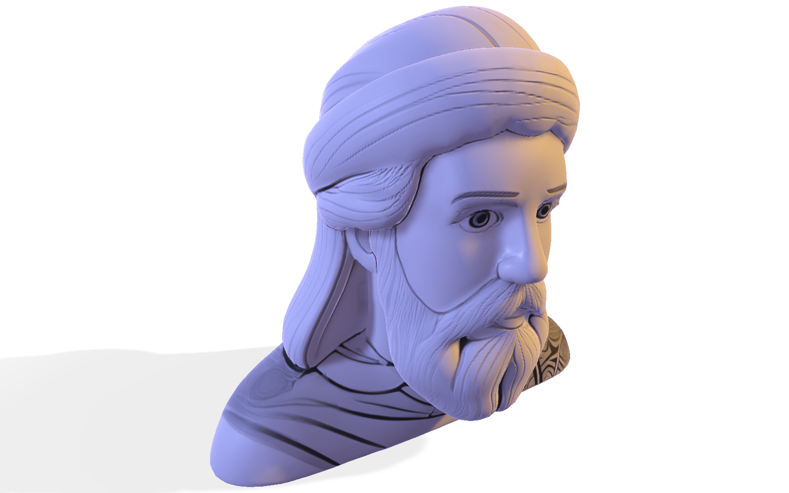 This 3D bust design showcases a serene figure wearing a flowing turban and a finely detailed beard. The gentle curves and intricate folds in the turban and facial hair add a touch of elegance, making it a wonderful decorative piece or conversation starter. The overall shape is smooth yet detailed, so it can be a fun challenge to print while still being friendly for beginners who want to practice capturing fine details in a 3D print.