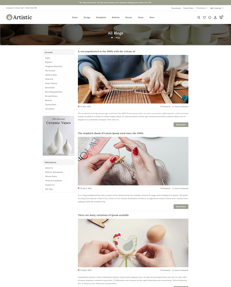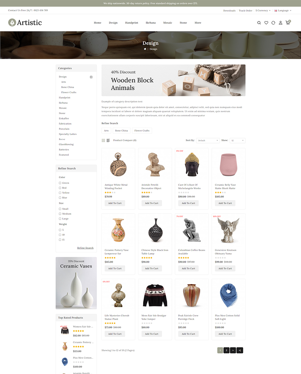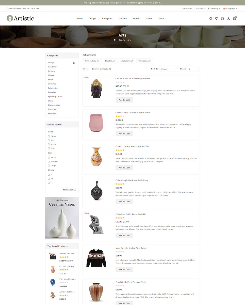 Artistic - Art & Decor Store theme is clean, beautiful and minimal Opencart theme help you to quickly build an ecommerce website for Art, Hand crafted item, Antique, Sculpture, Home Decor, Ceramic, Gift, Furniture & other multi-purpose stores. Theme is 100% responsive so it is completely adjustable for any devices and it's compatible with all browser.