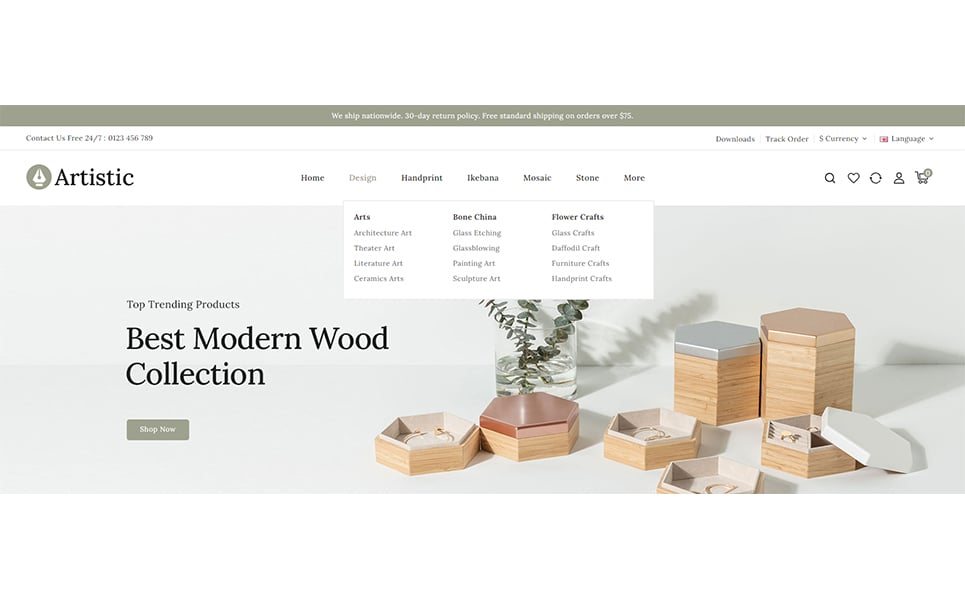 Artistic theme has featured category module to list out category with image and number of product on homepage to immediately approach customers to find their relevant product. Full screen responsive banner slider and other banner blocks on homepage help you to promote specific product and deals timer module to display discount on product with count down timer. Artistic theme is easy and flexible to make your store ready for quickstart sale since it has a one-click install option along with included quickstart file with theme package and configuration documentation.