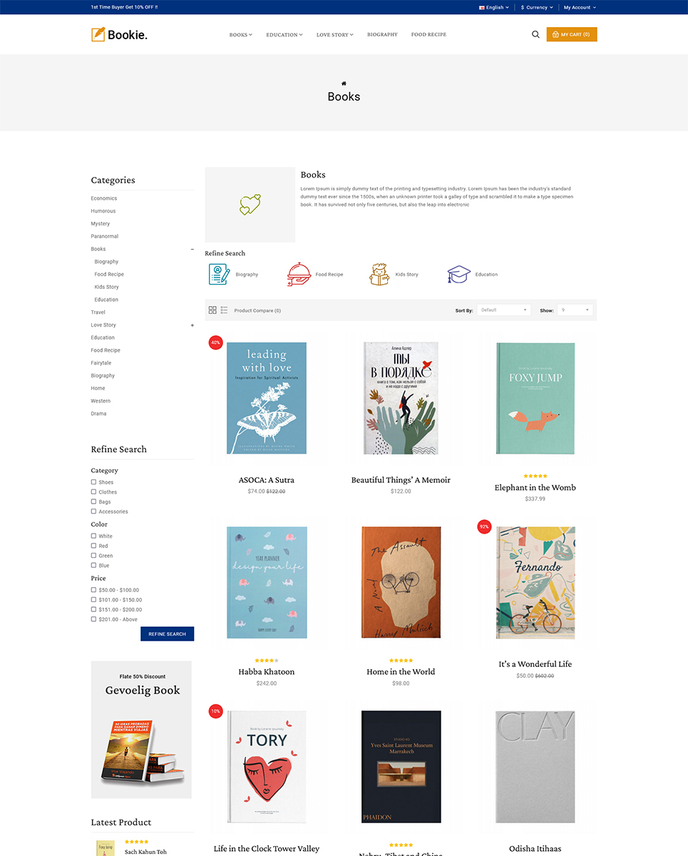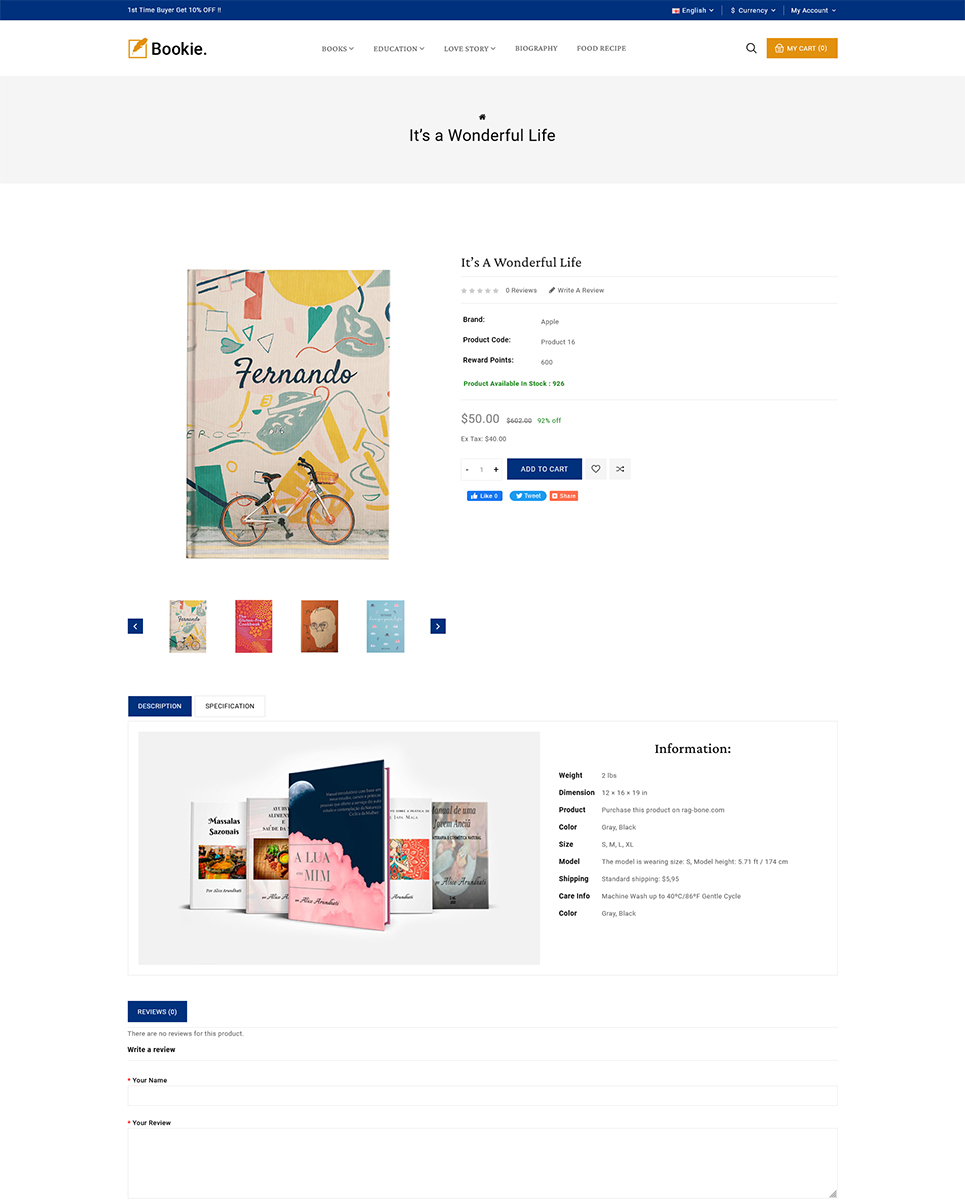 Bookie - Bookstall, eBook, Comic, Story, and Book Store Opencart Responsive Theme OpenCart Template