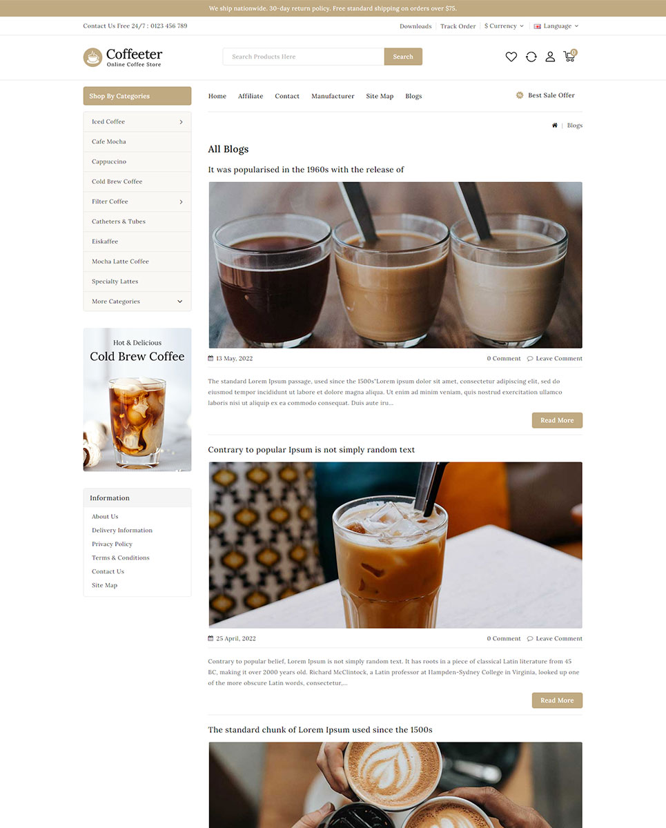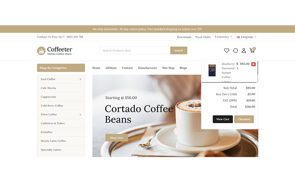 Coffeeter - Online Coffee Store Opencart Responsive Theme OpenCart Template