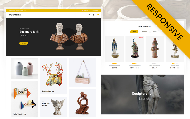 Convass - Art Gallery Store Opencart Responsive template is designed for Statue, Art, Craft, Culture, Gifts, Handicraft, Antique, Home decor, Art, Clay, Decor, Ceramic, Unique, Modern, Minimal and Multi Purpose Store. Template is 100% responsive which means that no matter the device, your store will scale beautifully to suit each device each browser. It multi-lingual & multi-currency support for your customers from other countries. We include quick start files with theme package to install this theme on your store with just one click with all content and images like our demo store.