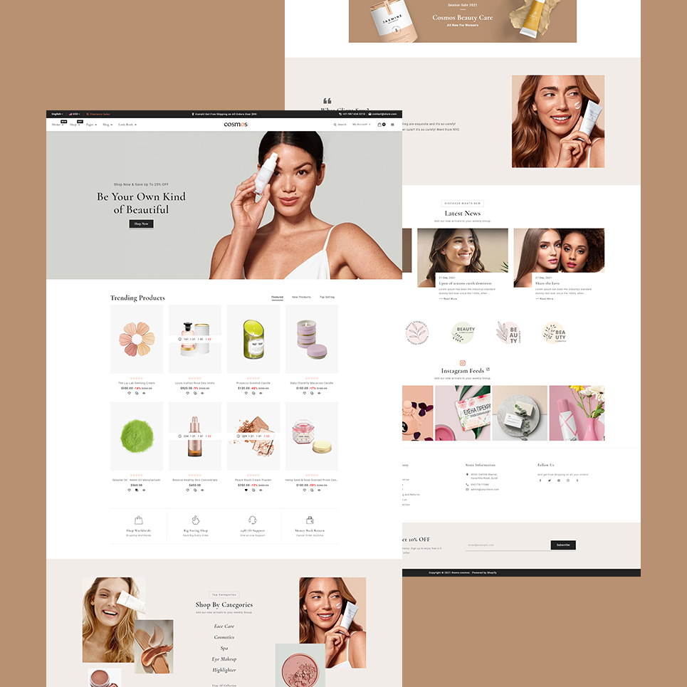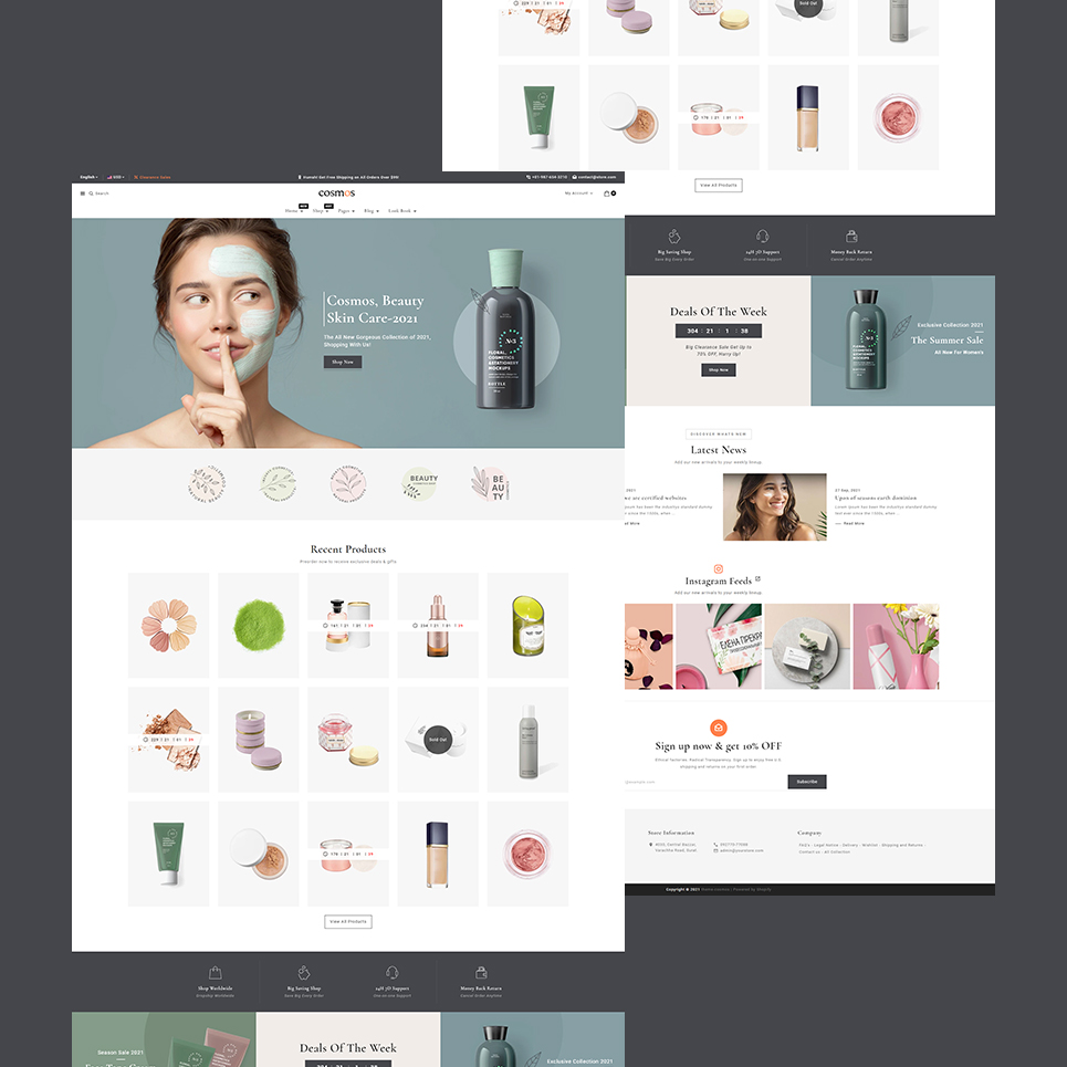 Cosmos - The modern Cosmetics, Spa, Skincare & Beauty Store OpenCart Theme. Build a high-conversion online store with ease and maximize profits from it thanks to powerful features and stunning design. Cosmos theme is SEO Optimized & Conversion-friendly Ready-made Unique & Beautiful 03+ Homepages Layout Designs for Cosmetics Store. fully responsive and ready for retina displays with cross-browser compatibility and friendliness with To look your website beautiful on tablets and mobile devices. Cosmos theme is to improve sales and profits for the online store through cross-selling strategy.
