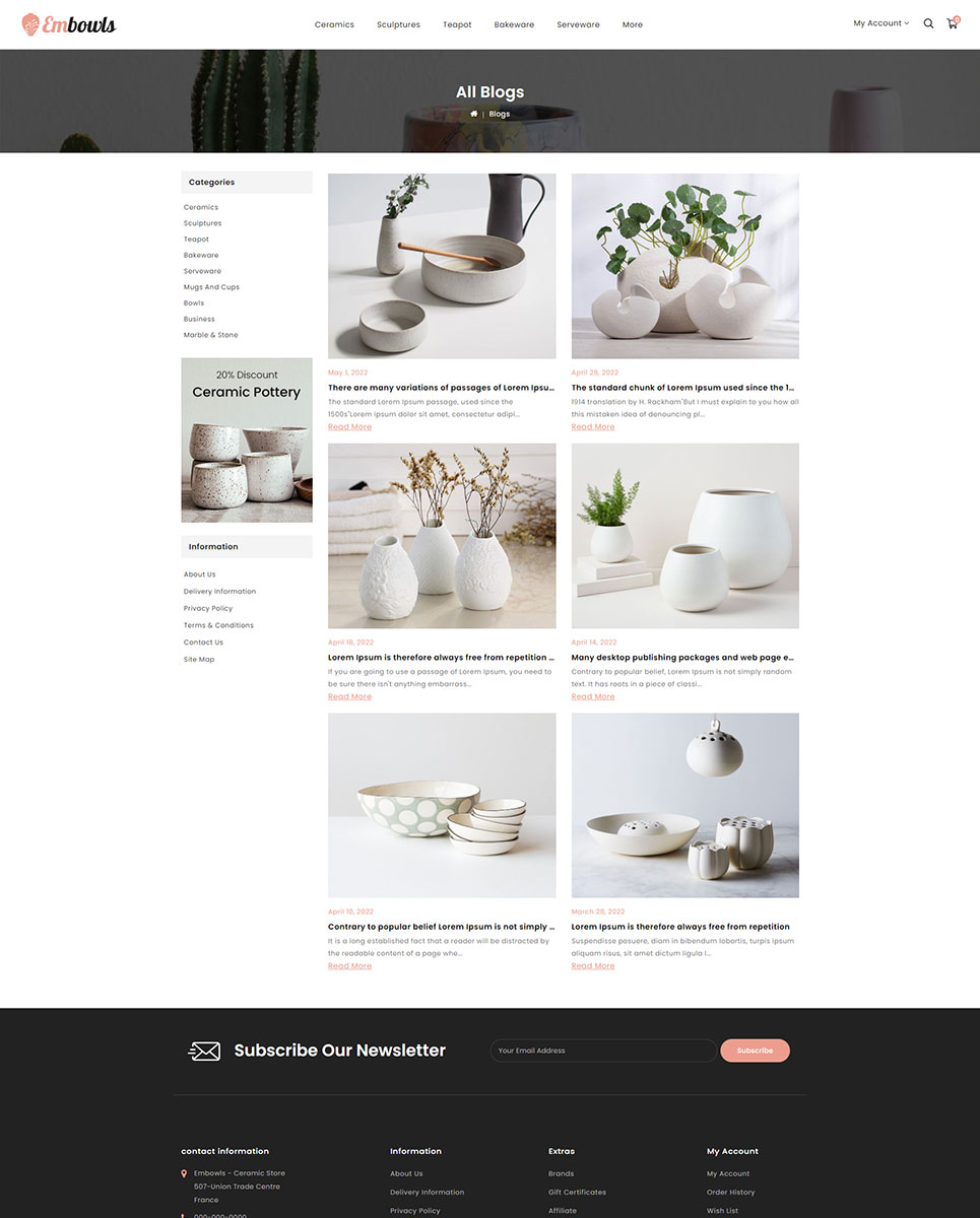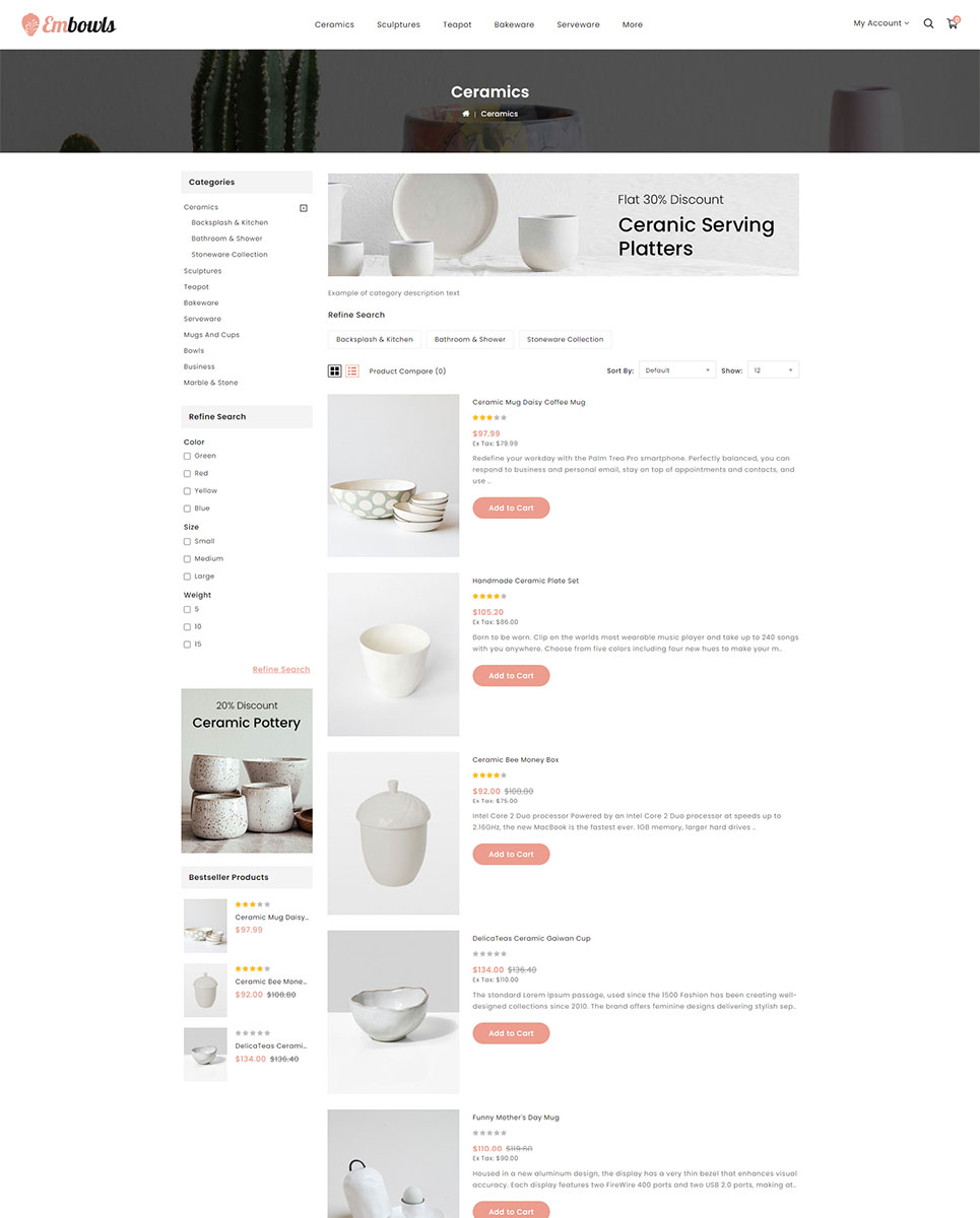 Embowls - Ceramic and Art Store Opencart Responsive Theme OpenCart Template