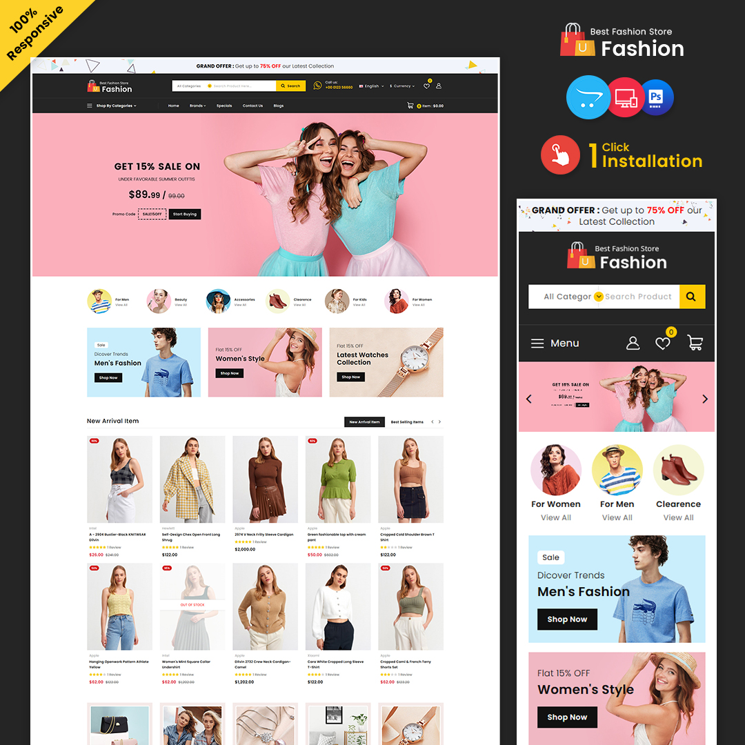 Fashion Store is the right choice if you or your client plan to start selling clothes, shoes, accessories, or other fashion supplies.