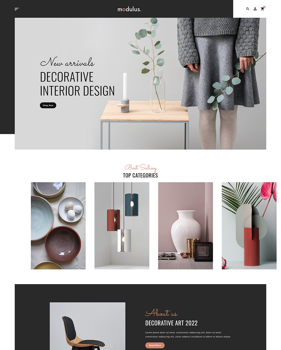 Modulus - Home Decorat & Furniture OpenCart Ecommerce Responsive Theme is very beautiful, fully flexible with 5+ different layouts and specially designed for any multipurpose shop like home interior design, sofa-chair, pottery, ceramics, furniture, kitchen, ceramicart, gift, fashion & many more business.