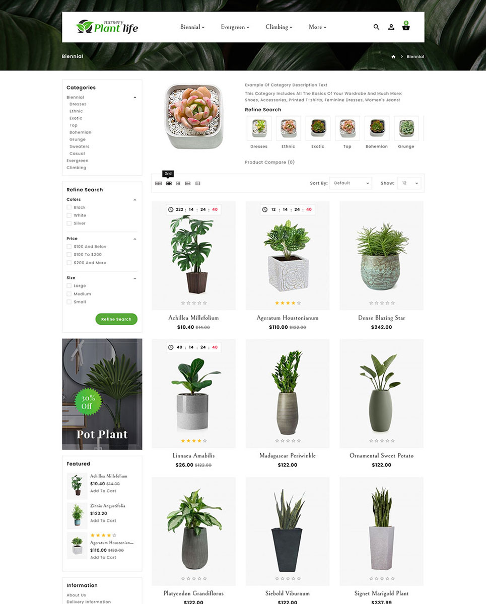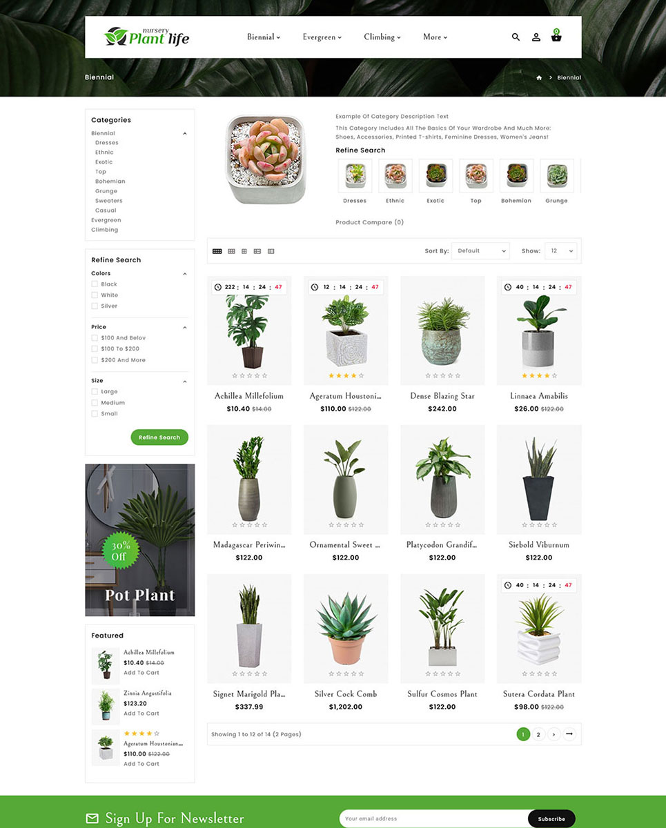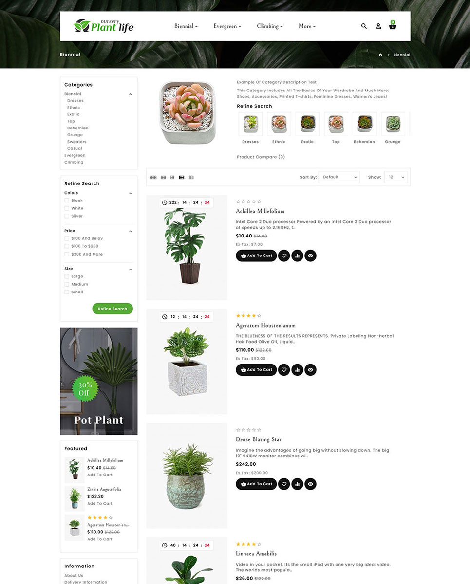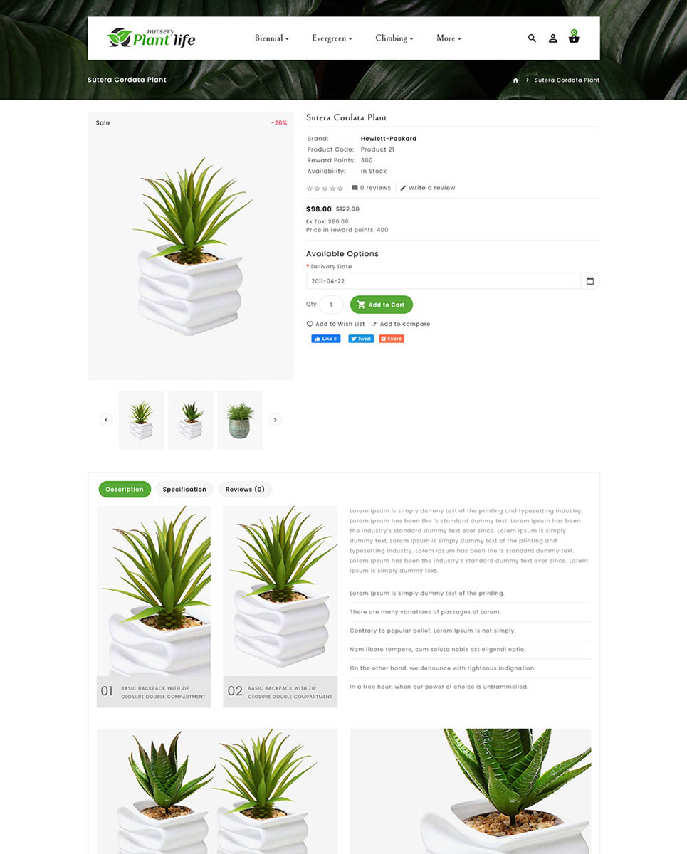Plant Life Nursery Opencart theme for catering all your needs for making this world greener and prettier than you found it. Plants bring natural beauty to our surroundings. Plant Life Nursery Opencart theme provide nursery collection includes annual flowers, aromatic and aquatic plants, cacti, bonsai, ferns, indoor and outdoor plants, landscape plants, bamboo, indoor plants, plants for bedrooms, air-purifying plants, and pet-friendly plants of premium quality, etc.