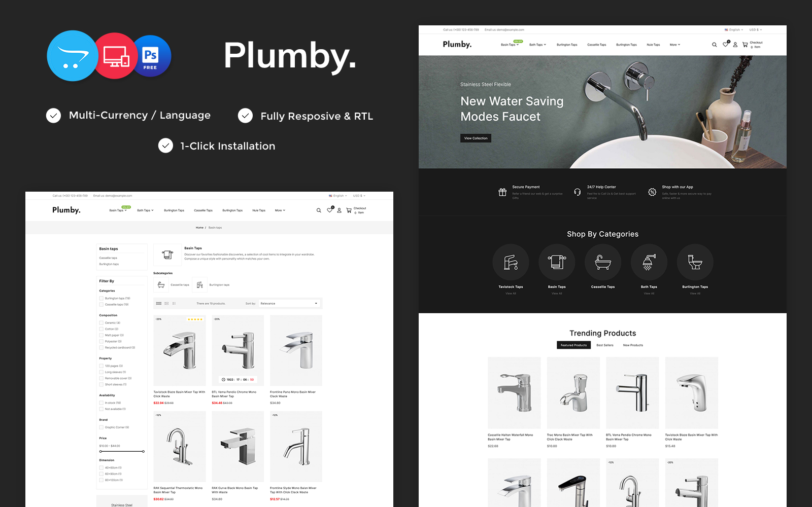 Are you eager to offer your goods and services directly from your website, eliminating the need for time-consuming sales calls? In such a scenario, make use of our High-Converting Plumby - Plumbing, Bathroom Accessories Store Opencart Template. the top website for anything from sports to tiles to plumbers to electronics to home lights to clothing and gadgets! This completely editable template was designed to help you launch your website fast! This theme is ideal for any business selling bath items and encourages clients to attentively browse the full space. Additionally, this theme contains a Shop Page that was specially created. This is ideal for giving your items the most enticing presentation possible. Additionally included are a one-click installation method and thorough, instantly usable step-by-step instructions. The Plumby Opencart theme has practical features that will help you start a cutting-edge online business. Try out this browser-compatible theme right now! For your website, this template provides a responsive, multilingual, and mobile-friendly design. Our cutting-edge website slider guarantees that all-important product information is constantly available to your clients.