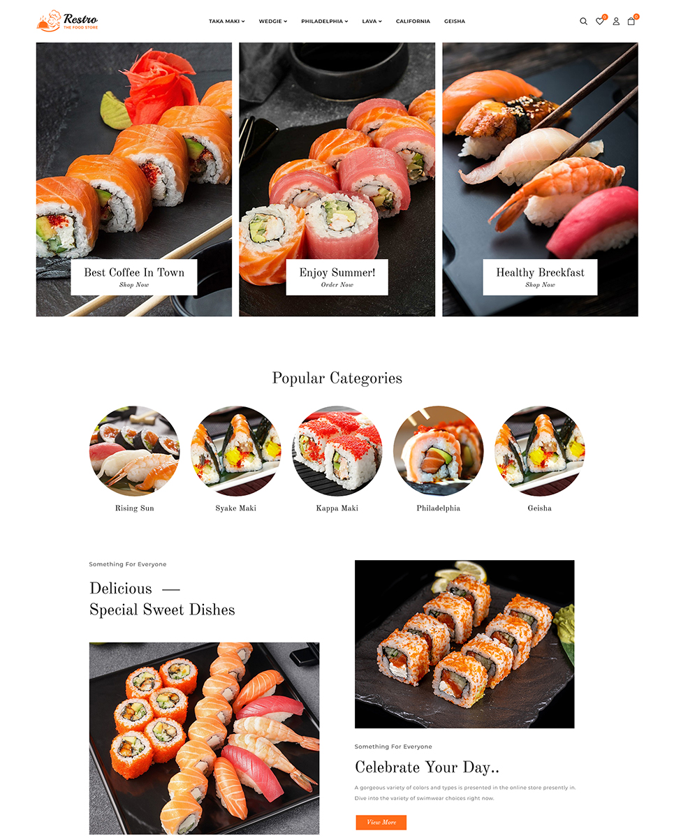 Restro - Sushi, Japanese, Chinese Restaurants Store OpenCart Theme designed specifically for Sushi Restaurants, Japanese Restaurants, Chinese Restaurants, and those that offer food services like pizzas, burgers, hot dogs, fries, cheeseburgers, seafood, pasta, chocolates, sandwiches, meat, fast food, drinks, dairy, organic food, juices, cookies, bread, coffee, nutritional food. It includes 04+ awesome predesigned demos that are quickly imported to install your food shop as samples. It’s a robust and complete Multi-Purpose OpenCart Theme. Are you ready to make your online shop now? Let's try this superb Restro Template and create a professional-looking & modern website for your needs. It includes 04+ awesome predesigned demos that are quickly imported to install your food shop as samples. Therefore, you can choose your favorite style as you prefer.