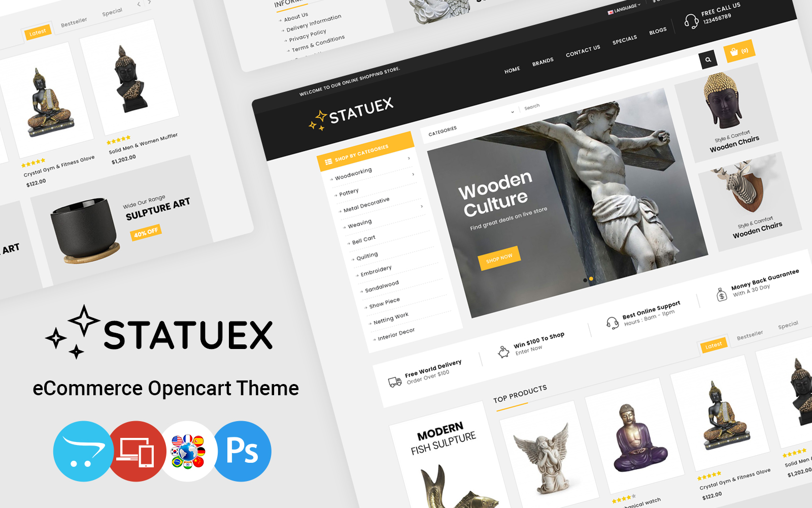 Statuex - Art Gallery Shop and Crafts Store OpenCart Template