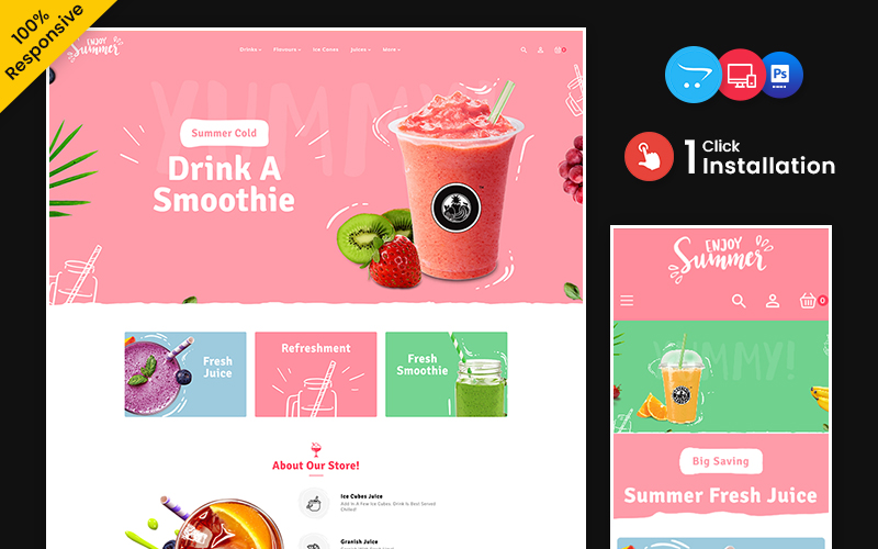 Summer - Juice and Drink Multipurpose OpenCart Store is created for various purpose e-commerce websites like foods, juice, energy-drink, wine, Ice cream, & much more.