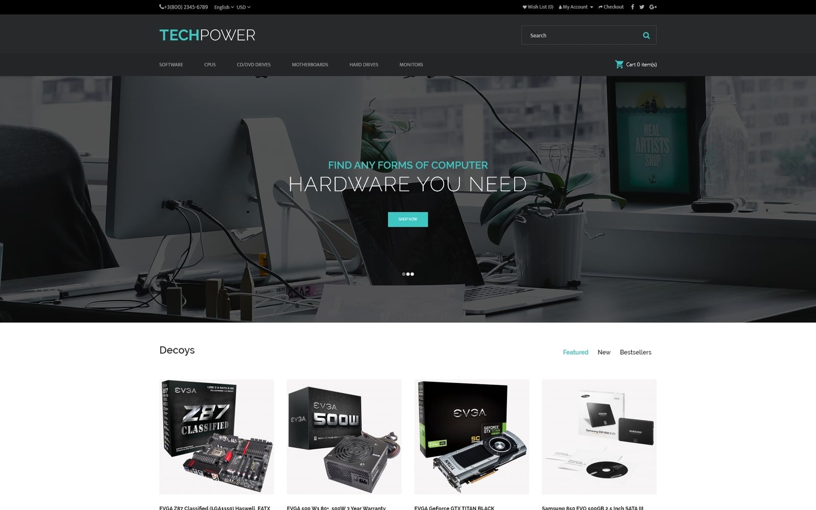 TechPower is a combination of modern design and the standard of super pure coding. This OpenCart template is very easy to configure. You can use it to create online hardware stores, such as digital store, HiTech store, and PC accessories. The template is optimized for SEO, which will make your site search engine-friendly and help you with Internet marketing. A powerful, intuitive and friendly template control panel with all the basic built-in functions will help you with store management and configuration without having to worry about writing any code if you do not want it. A variety of colors and styles of headers and flexible layouts for displaying content are significant characteristics of the template.