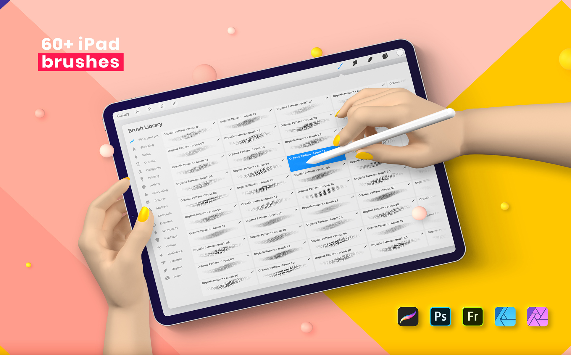 - BRUSHSET file allows you to install a set of 60 texture brushes all at once in Procreate app for your iPad.