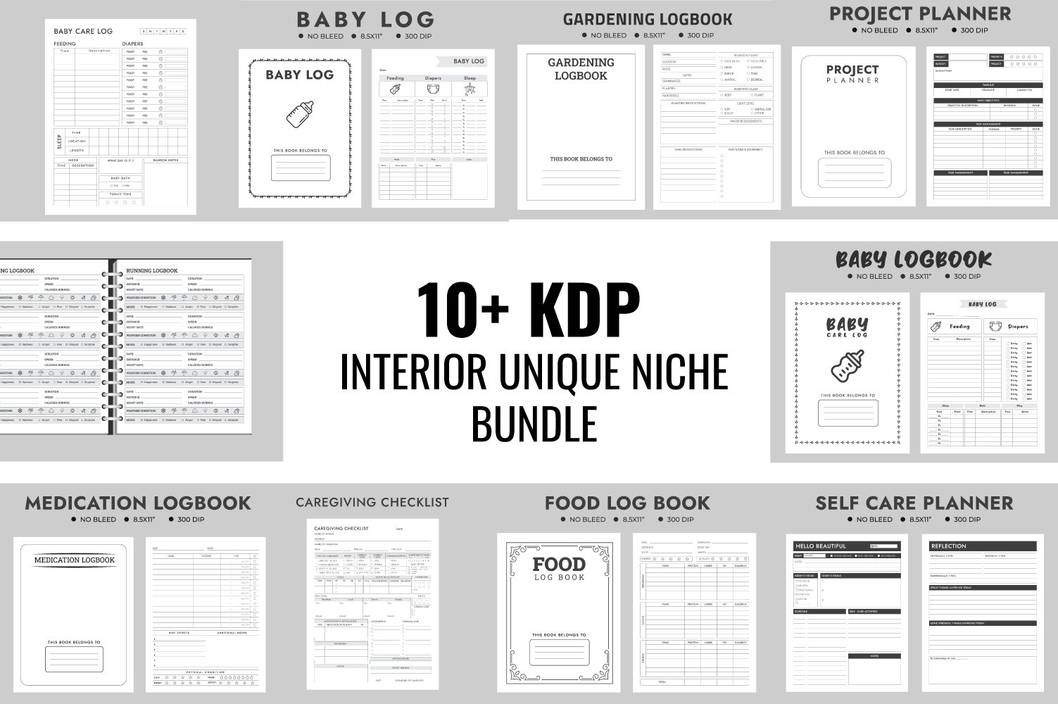 This bundle contains over 10+ professionally designed KDP interior templates in a no-bleed, 8.5"x11" format, perfect for self-publishers looking for niche-specific logbooks, planners, and checklists. Each template is crafted to be print-ready and customizable for a variety of niches, including baby care, gardening, project management, and more. With a high 300 DPI resolution, these interiors are perfect for creating products for Amazon KDP.