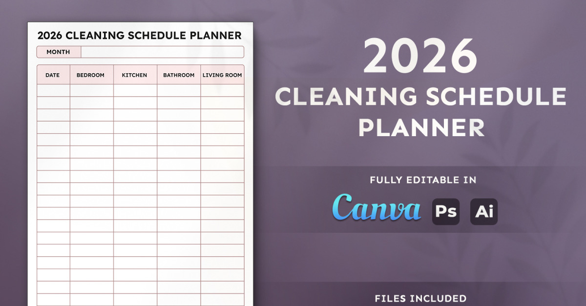 2026 Cleaning Schedule Planner Template – Printable Organizer, Minimal Canva Template