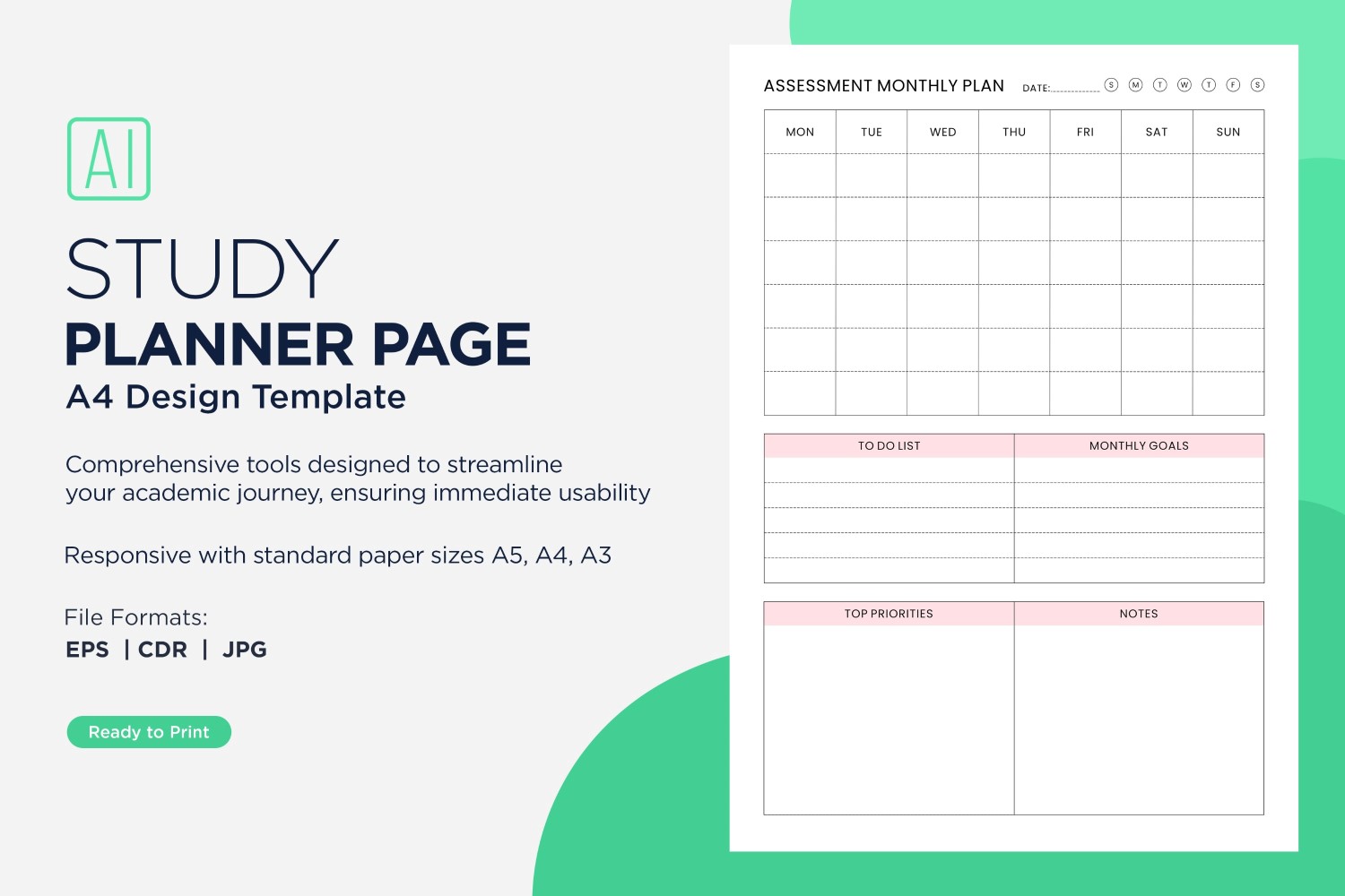 Assessment Monthly Planner Study Planning Page, Planner Sheet, Design Template 04