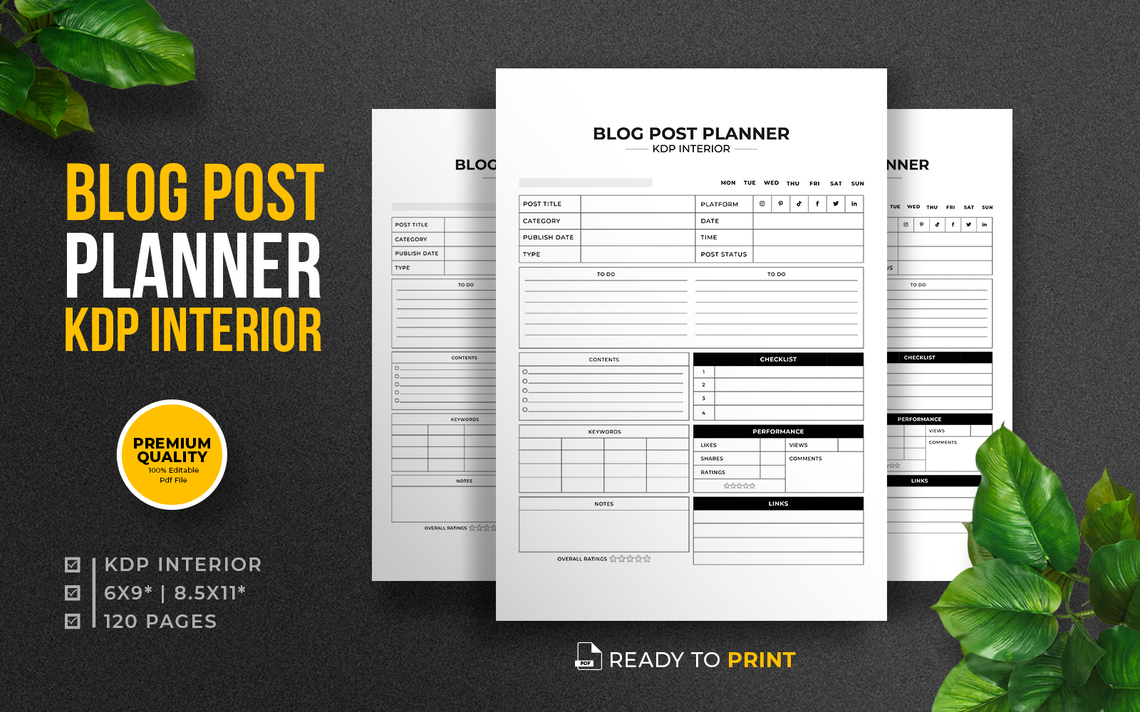 Blog Post Planner KDP Interior- (Ready To Upload and Ready to Print-PDF, Illustrator and Eps Files)