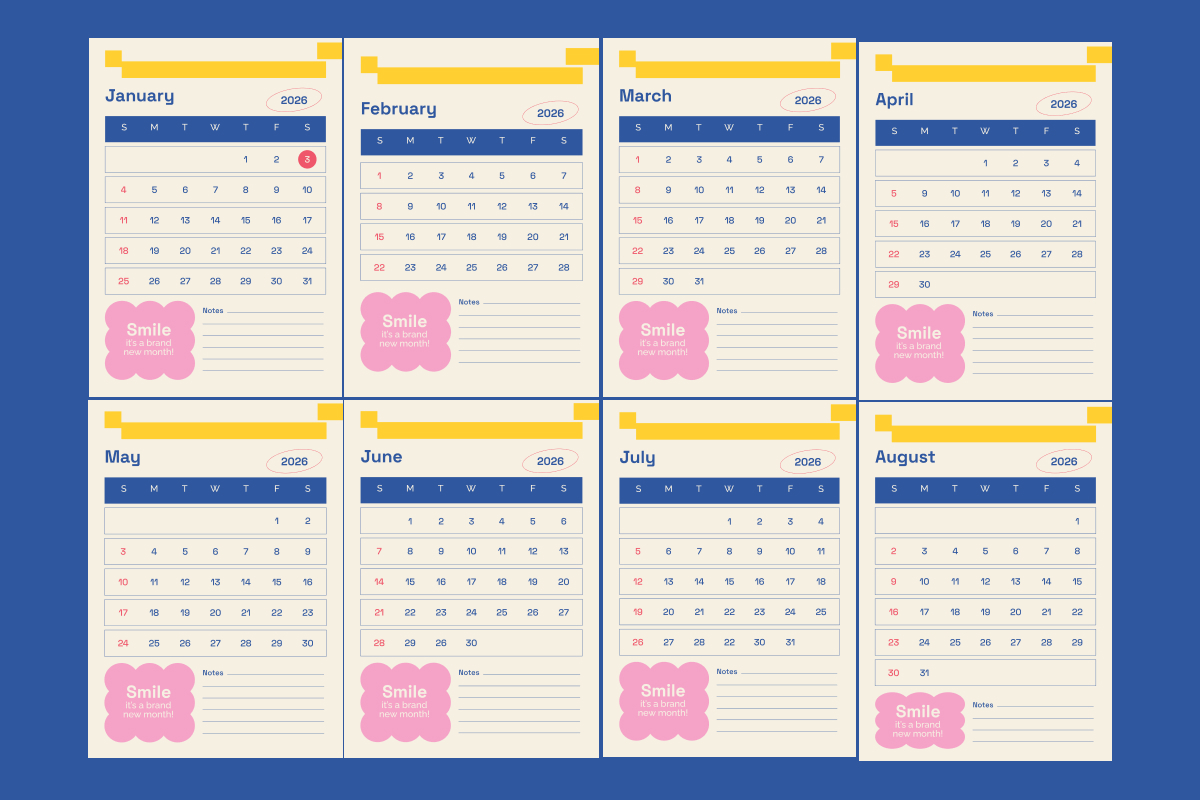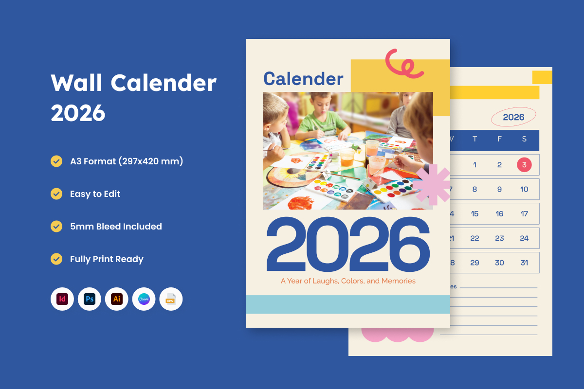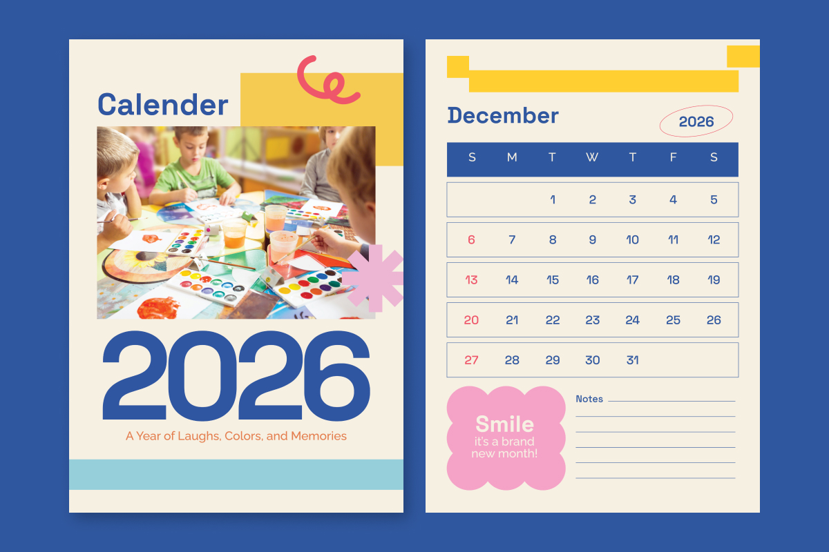 This calendar is designed to enhance the learning experience with bright colors and educational illustrations. The clean layout with note-taking space helps teachers and parents mark exams, holidays, or other important events.