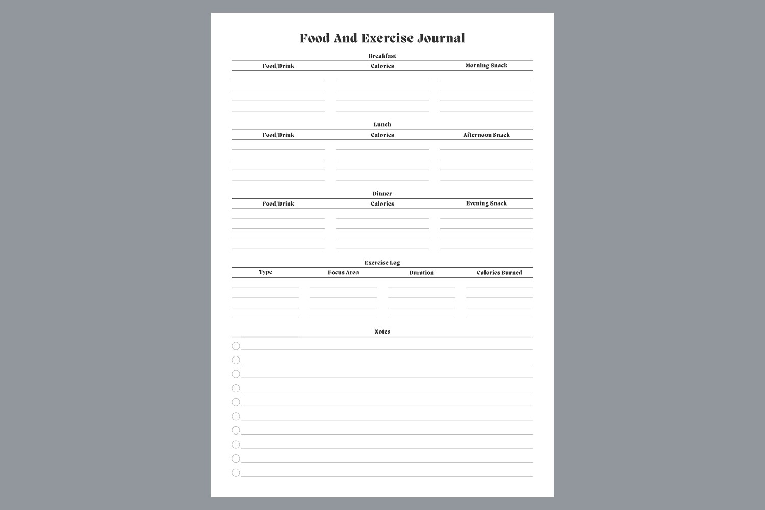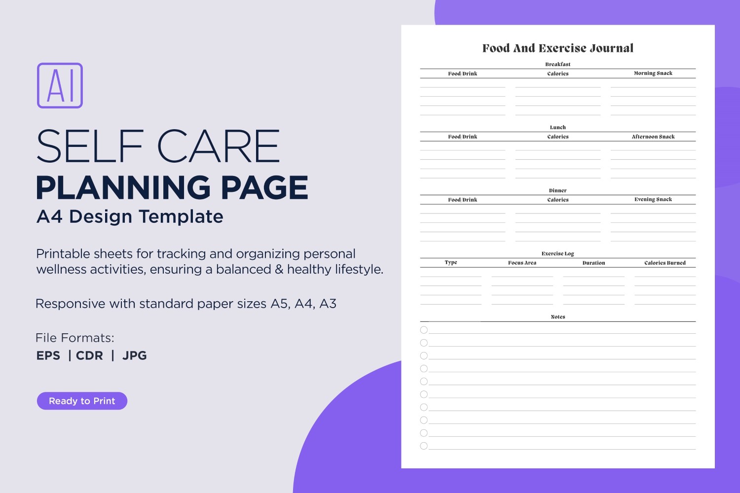 Food And Exercise Journal Self Care Planning Pages, Planner Sheets, 73
