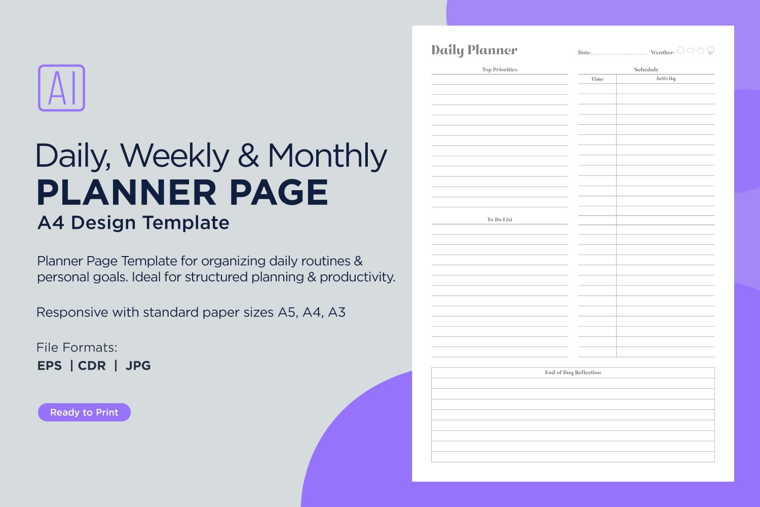 The planner sheets are provided in PDF, EPS, and JPG formats, making them versatile and ready for printing. Whether for personal, professional, or academic use, these pages support streamlined scheduling and goal setting. Perfect for enhancing productivity, they are a practical resource for anyone looking to stay organized and efficient.