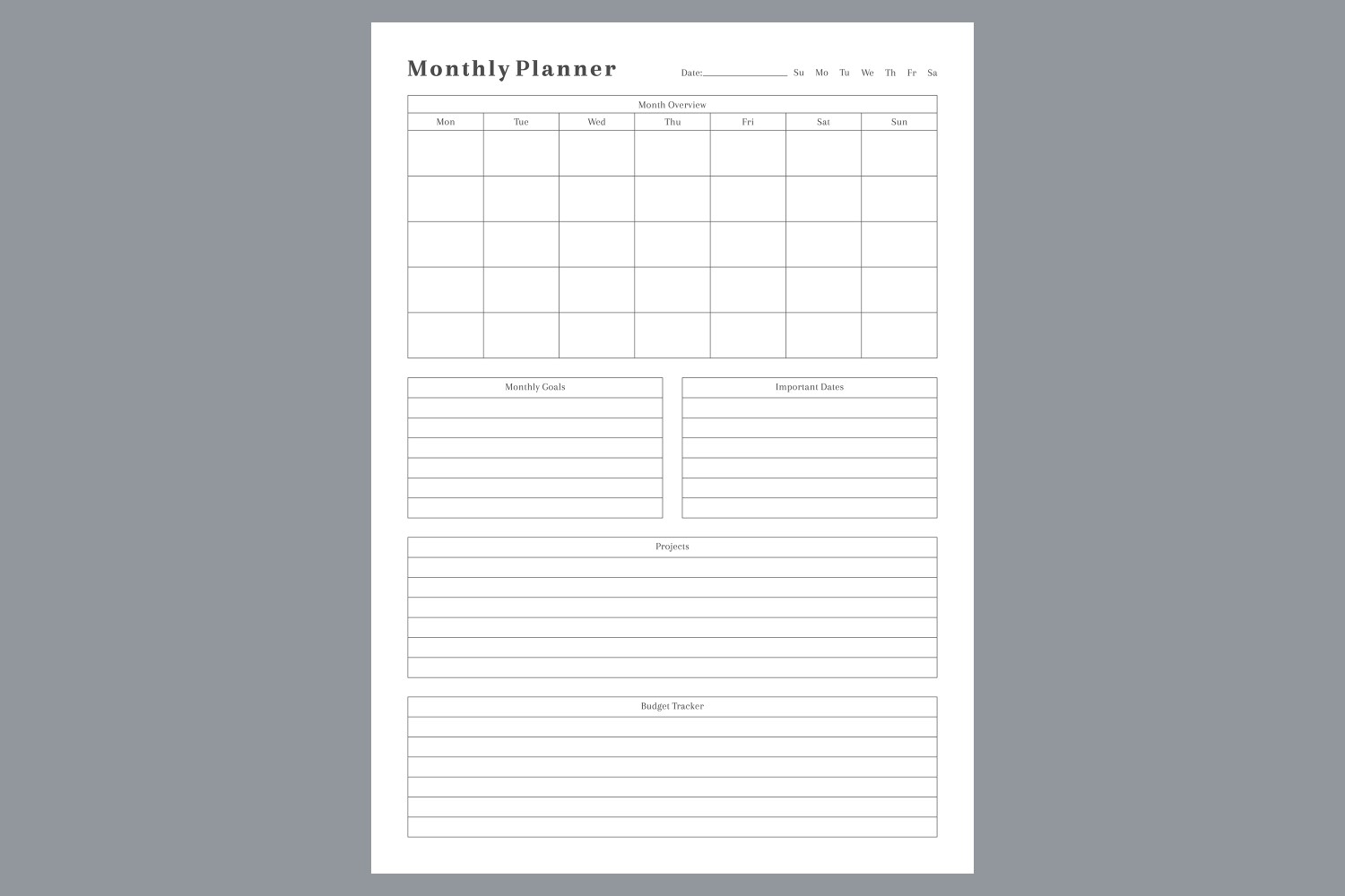 Generic Monthly Planner Planning Pages Planner Template 08