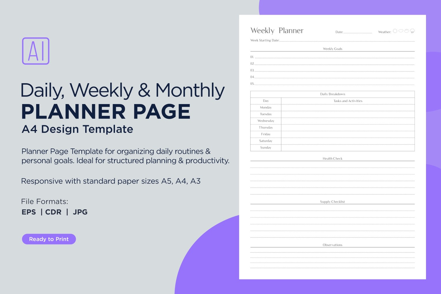 The planner sheets are provided in PDF, EPS, and JPG formats, making them versatile and ready for printing. Whether for personal, professional, or academic use, these pages support streamlined scheduling and goal setting. Perfect for enhancing productivity, they are a practical resource for anyone looking to stay organized and efficient.