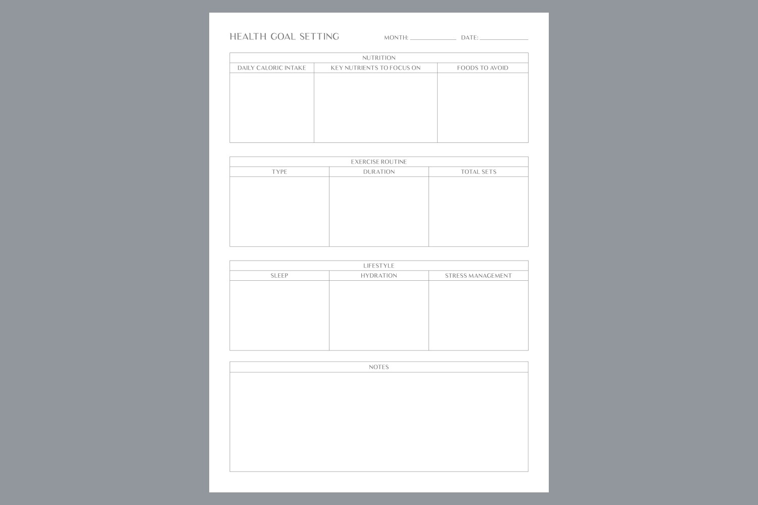 Health Goal Setting Self Care Planning Pages, Planner Sheets, 40
