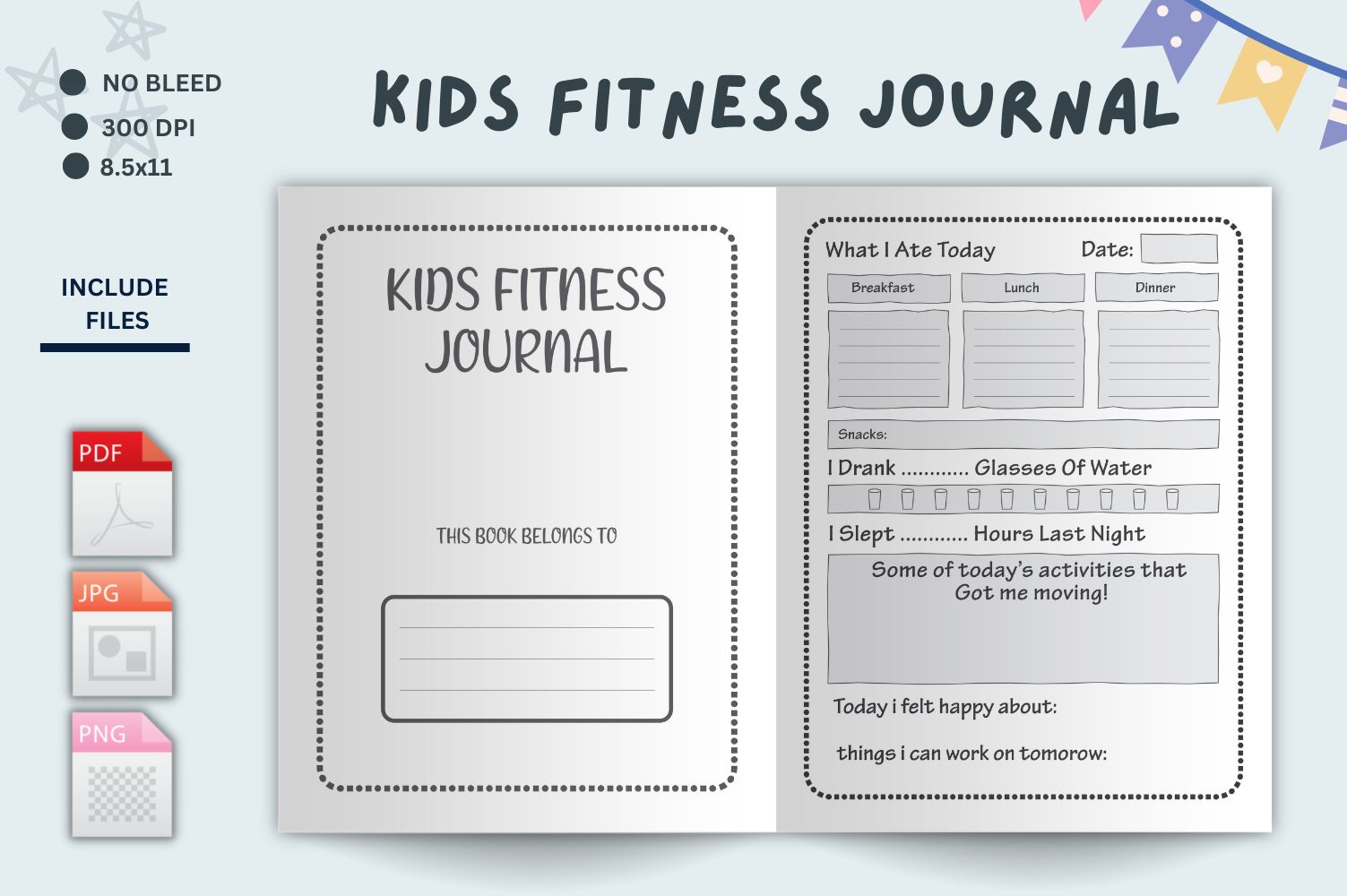 Kids Fitness Log, Water Tracker, Food Tracker, Exercise Log, Page Inserts, Planner Pages