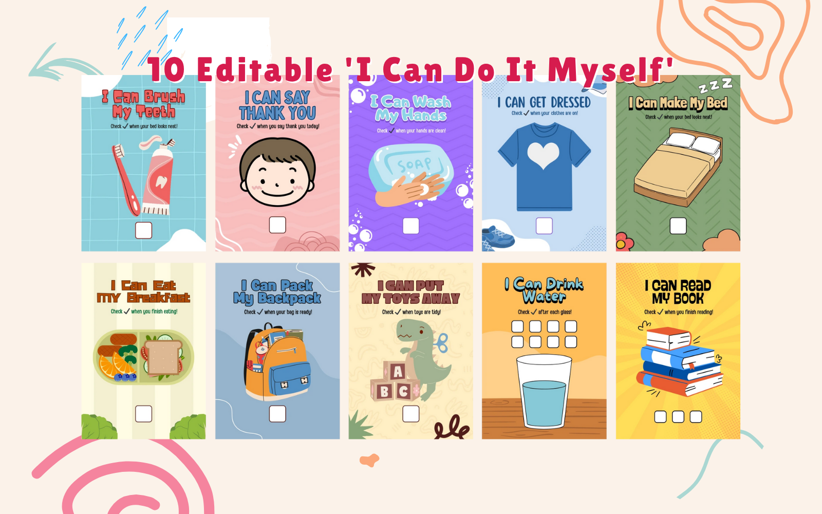 ✅ 10 Editable 'I Can Do It Myself' templates to boost confidence & self-reliance