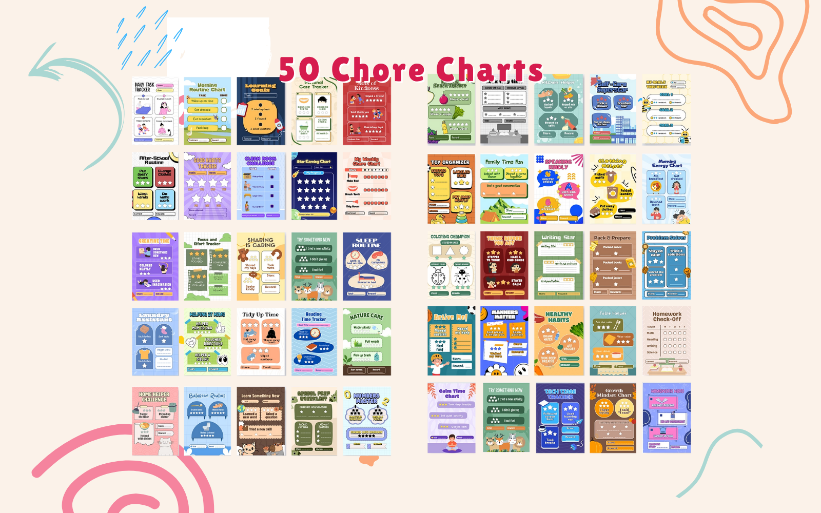 ✅ 50 Chore Charts with visual checklists, reward stars & age-specific tasks