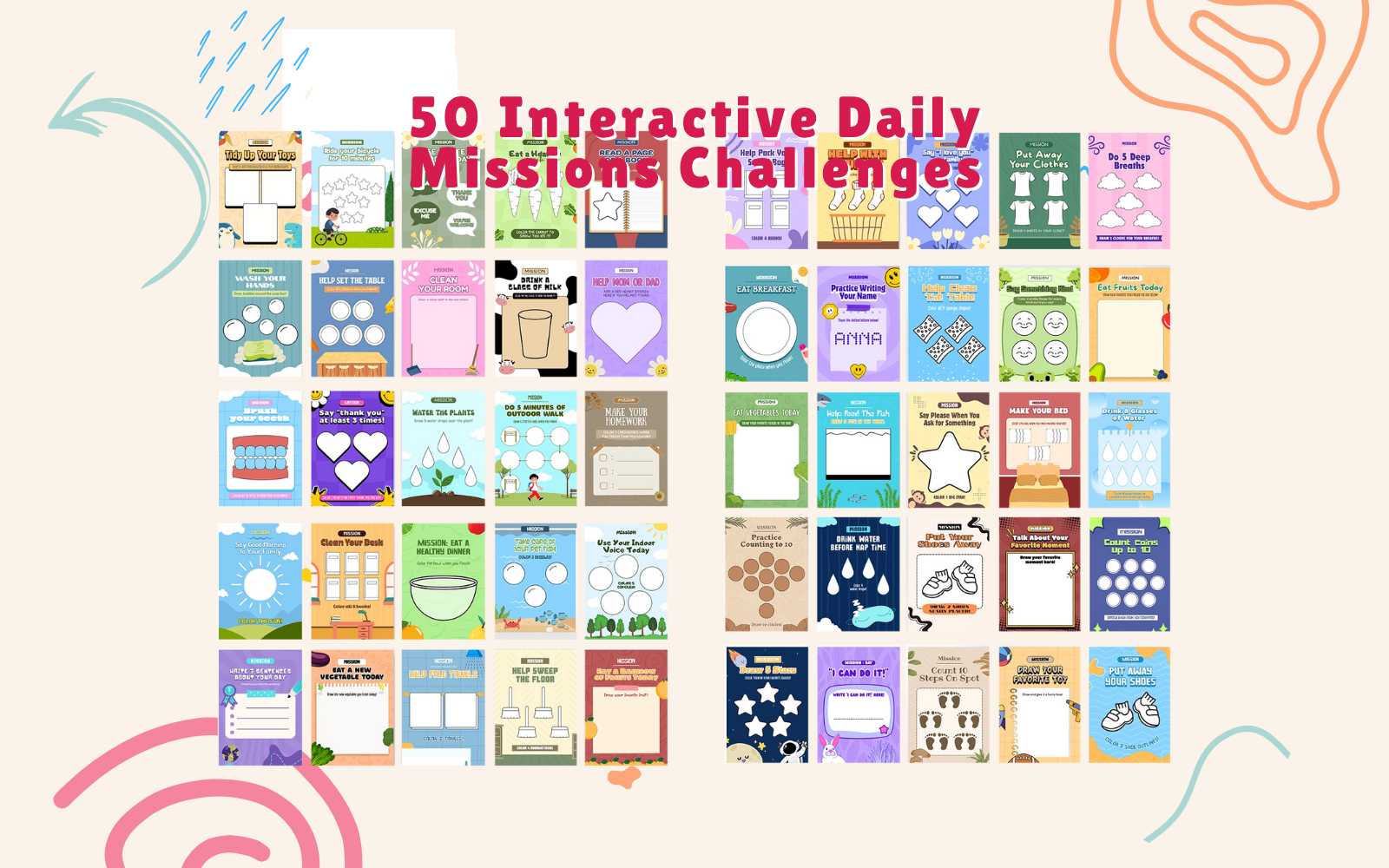 ✅ 50 Interactive Daily Missions Challenges – gamified challenges like 'Feed the Pet' or 'Tidy My Room'