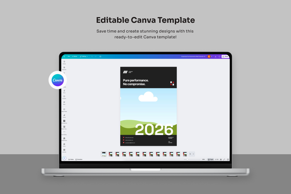 Tailored for corporate brands and automotive marketers, this template helps you promote your identity all year round — with layouts that highlight your vehicles and corporate visuals effortlessly.